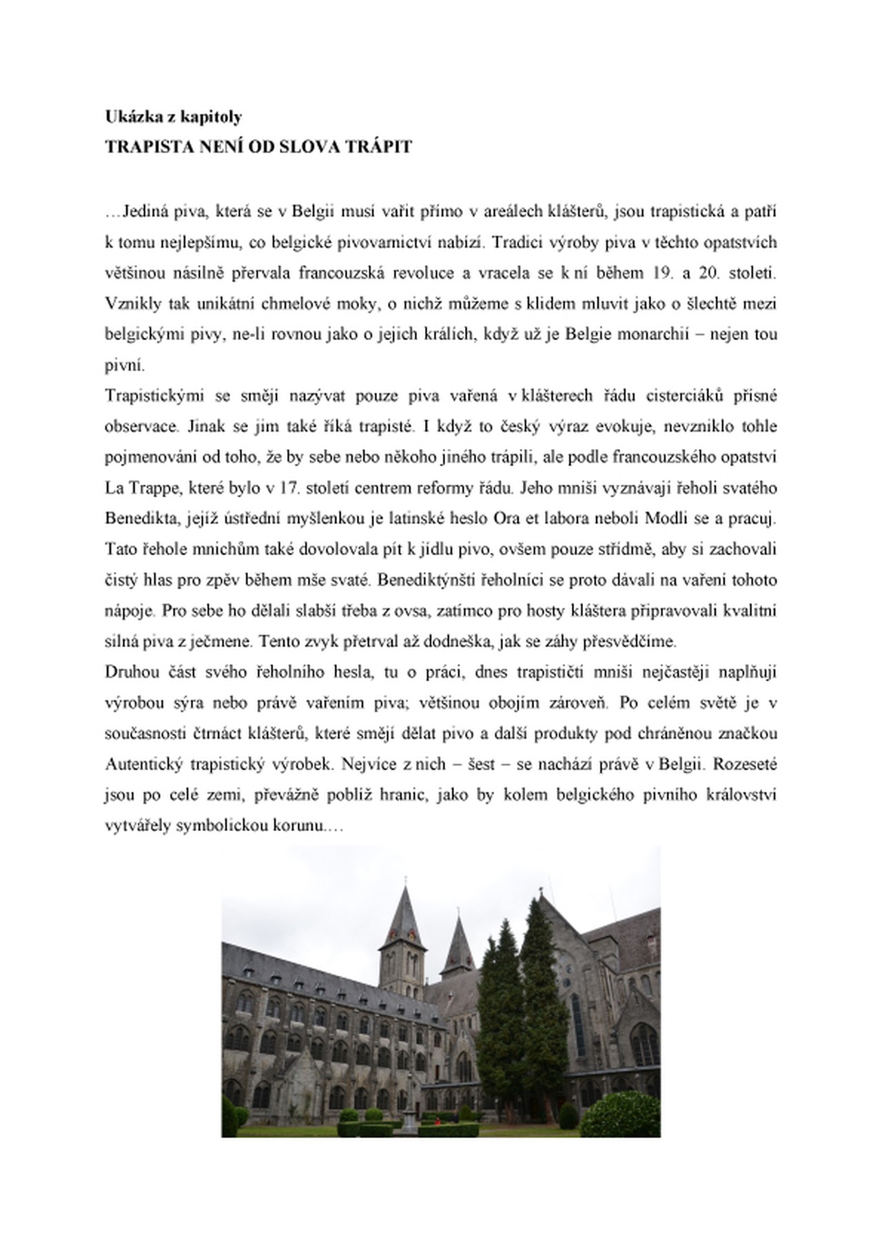 Belgie se v žádném případě nerovná jen Brusel. Království u Severního moře toho nabízí mnohem víc, a to i pro milovníky chuťových zážitků. Belgie je vyhlášená svojí čokoládou a hranolky s nepřeberným množství omáček. Pro většinu Čechů je ale určitě její nejpřitažlivější stránkou pivo. Vaří se tam téměř 2000 různých piv, které z Belgie dělají jednu z pivně nejrozmanitějších a nejzajímavějších zemí světa. Trapistické pivo, lambic, gueuze, kriek, dubbel nebo tripel jsou jen některé z typických belgických pivních stylů. Po těchto pivních specialitách vás v této knize provede bývalý zpravodaj Českého rozhlasu v Beneluxu a pivní znalec Filip Nerad. Prostřednictvím jeho pivního putování zároveň procestujete celou Belgii a poznáte i mnohá její méně známá místa. Zjistíte, co všechno spojuje známý trapistický klášter Orval s Českem, jak souvisí bruselská kanalizace s unikátními spontánně kvašenými pivy a kde leží belgický Žatec. Dozvíte se také, jak hluboko jsou Belgičané ochotní sáhnout do peněženky, aby se mohli zakousnout do chmelových výhonků, jak se páruje pivo s čokoládou nebo kudy vede první pivovod na světě. To vše je doplněné zajímavými postřehy o Belgii a mnoha fotografiemi.