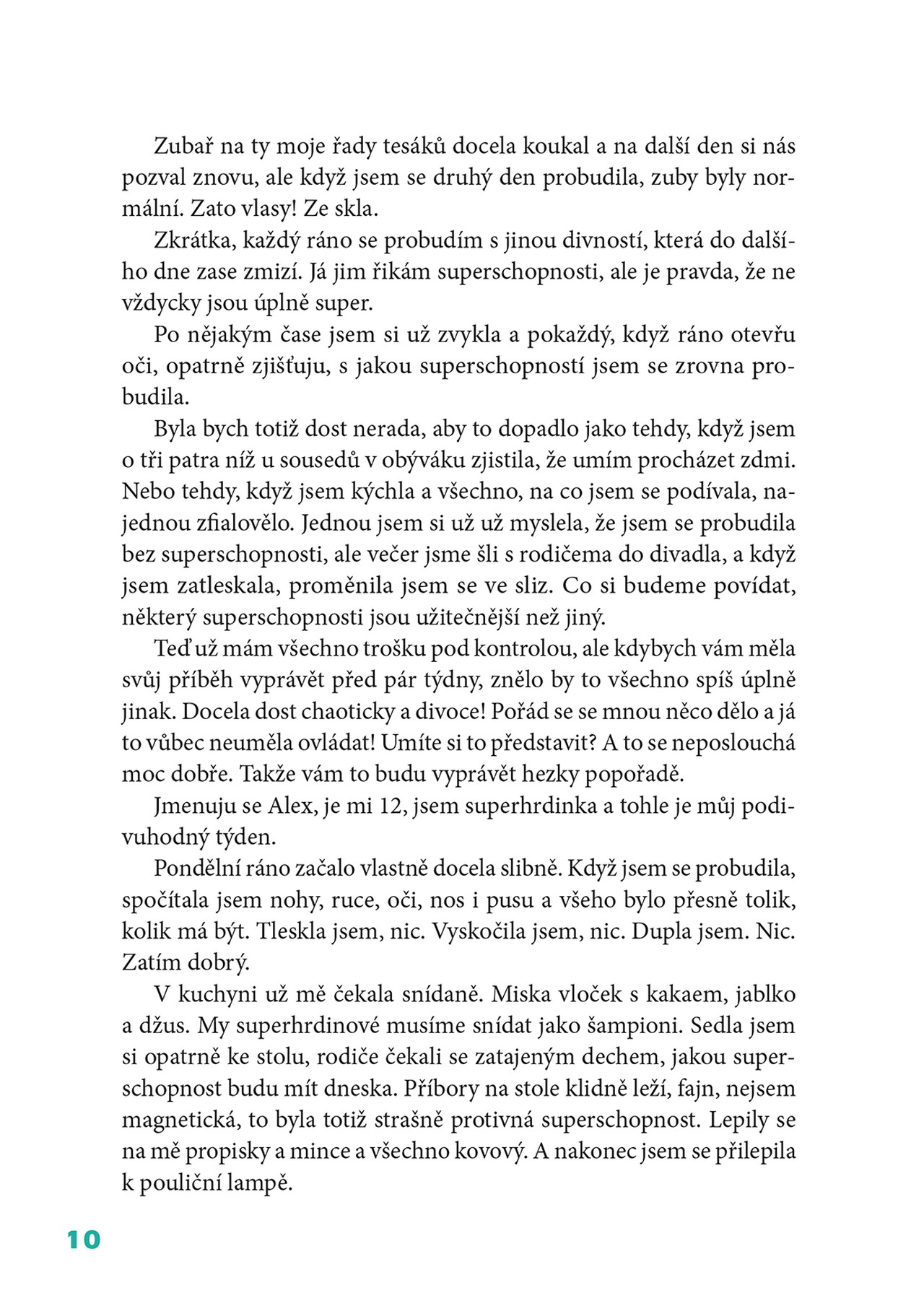 Alex je 12 let a každý den se probudí s úplně novou superschopností. Jaké to je mít třeba supersílu, slyšet jako pes, létat nebo lézt po zdech? A existují pro takové superschopnosti nějaká skutečná vysvětlení?