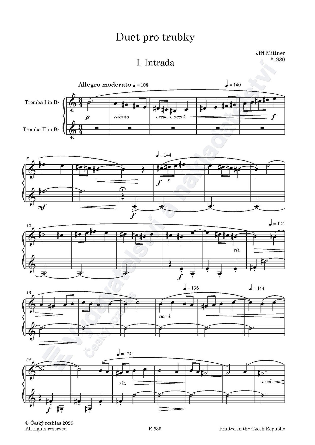 Dílo vzniklo původně ve verzi pro dvě B-trubky a až s jeho vydáním v roce 2025 jsem doplnil verze pro ostatní žesťové nástroje.“ Jiří Mittner