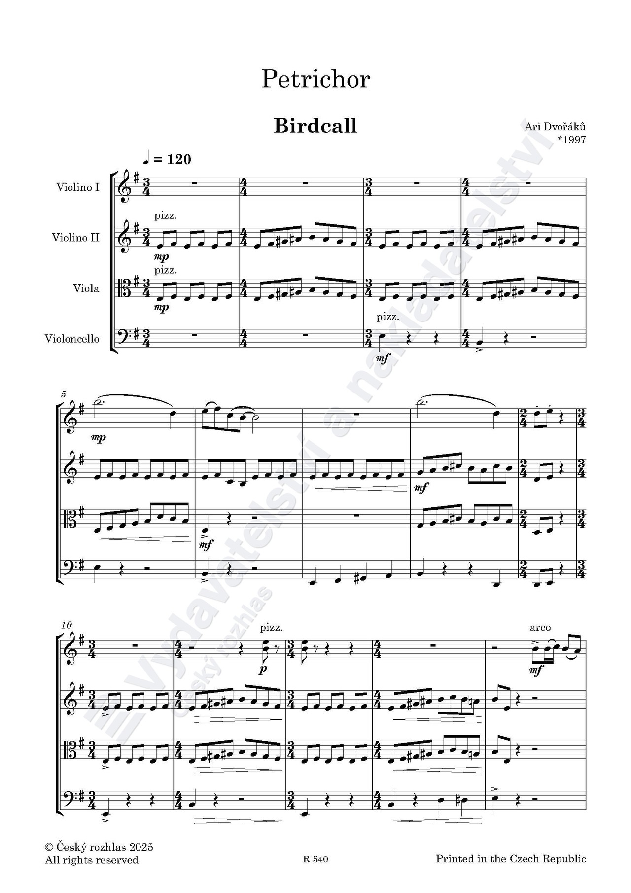 Ari Dvořáků: Petrichor pro smyčcové kvarteto