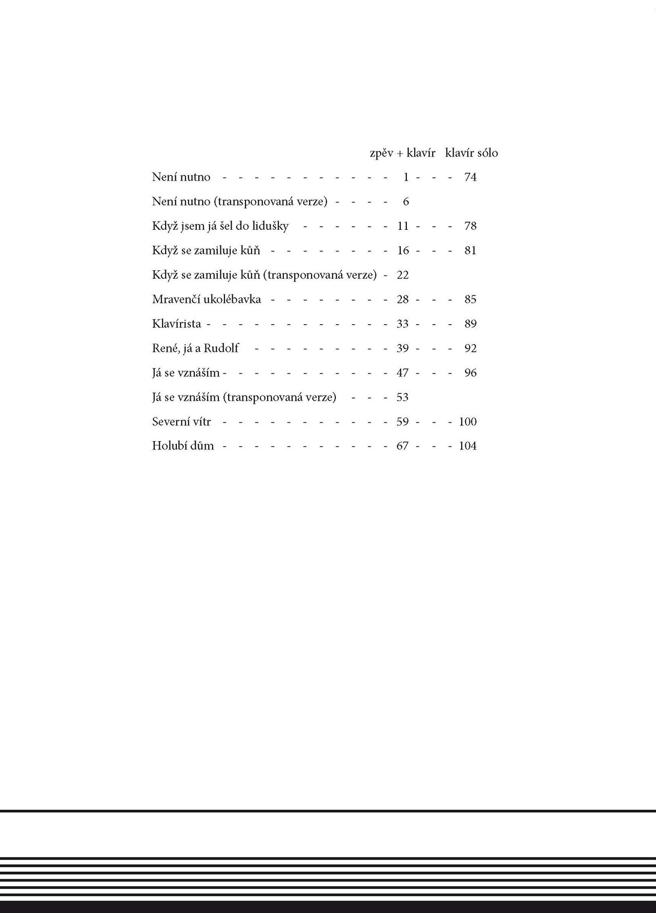 Tradiční úpravy pro zpěv a klavír, sólový klavír nebo sólový nástroj v ladění C, B nebo Es s klavírním doprovodem se zhostila Karolina Šustová.