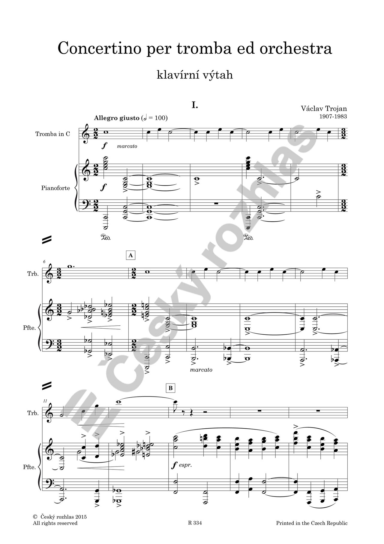Václav Trojan: Concertino per tromba ed orchestra / klavírní výtah
