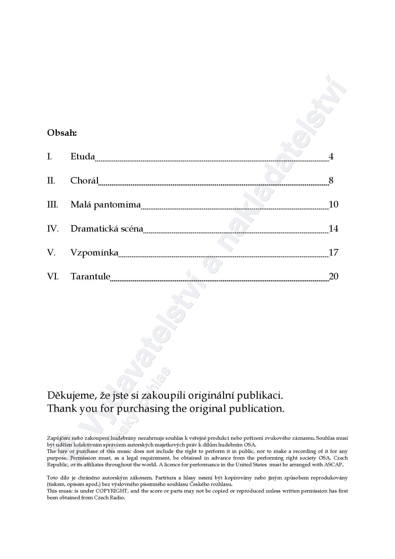 První část, Etuda, je drobnou hudební hříčkou postavenou na efektu virtuozity. Důležité je proto zvolit dostatečně svižné tempo, v rámci něhož lze případně nahradit efekt dvojitého staccata staccatem jednoduchým.