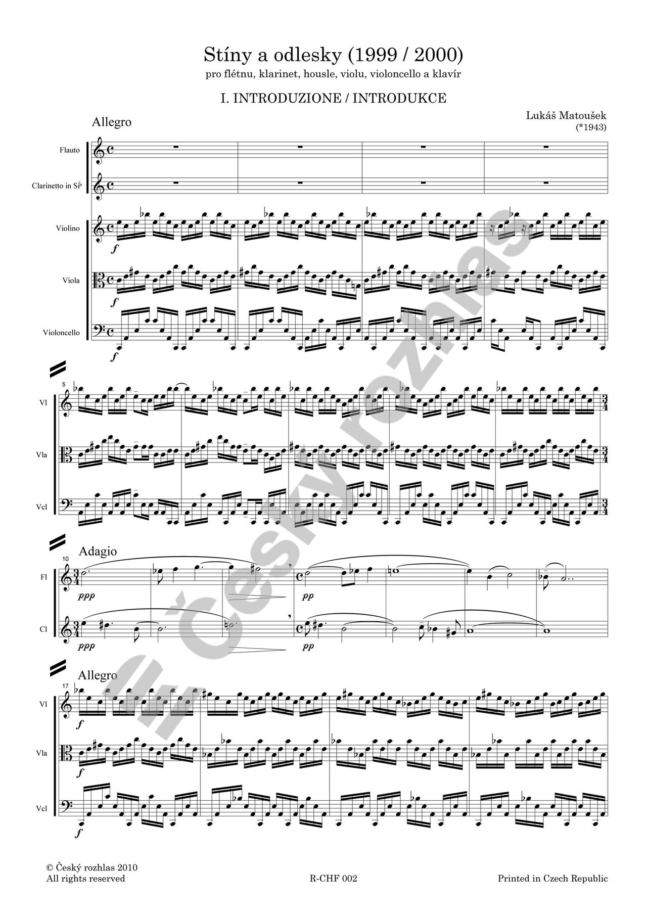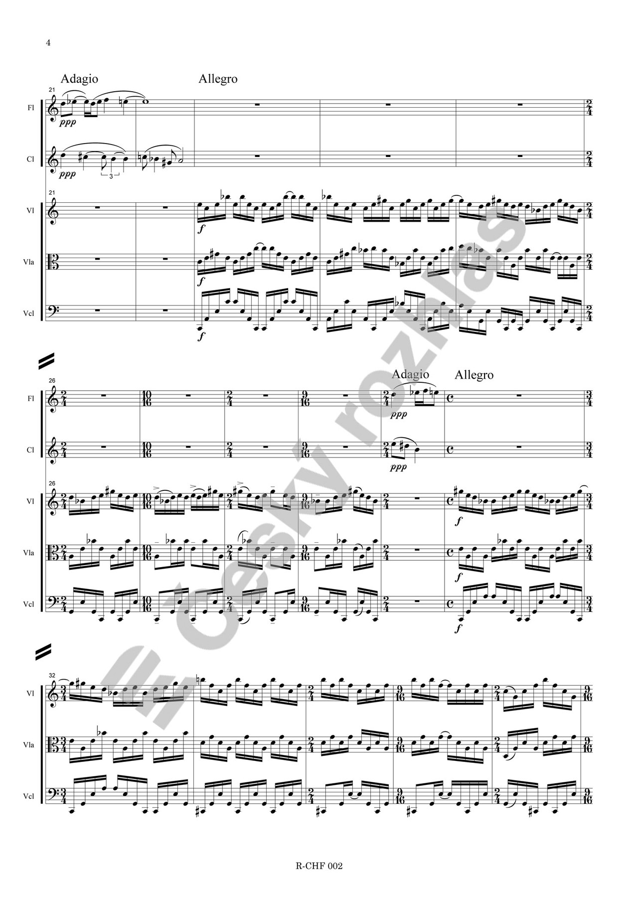obsazení: fl, cl, vno, vla, vcl, pfte