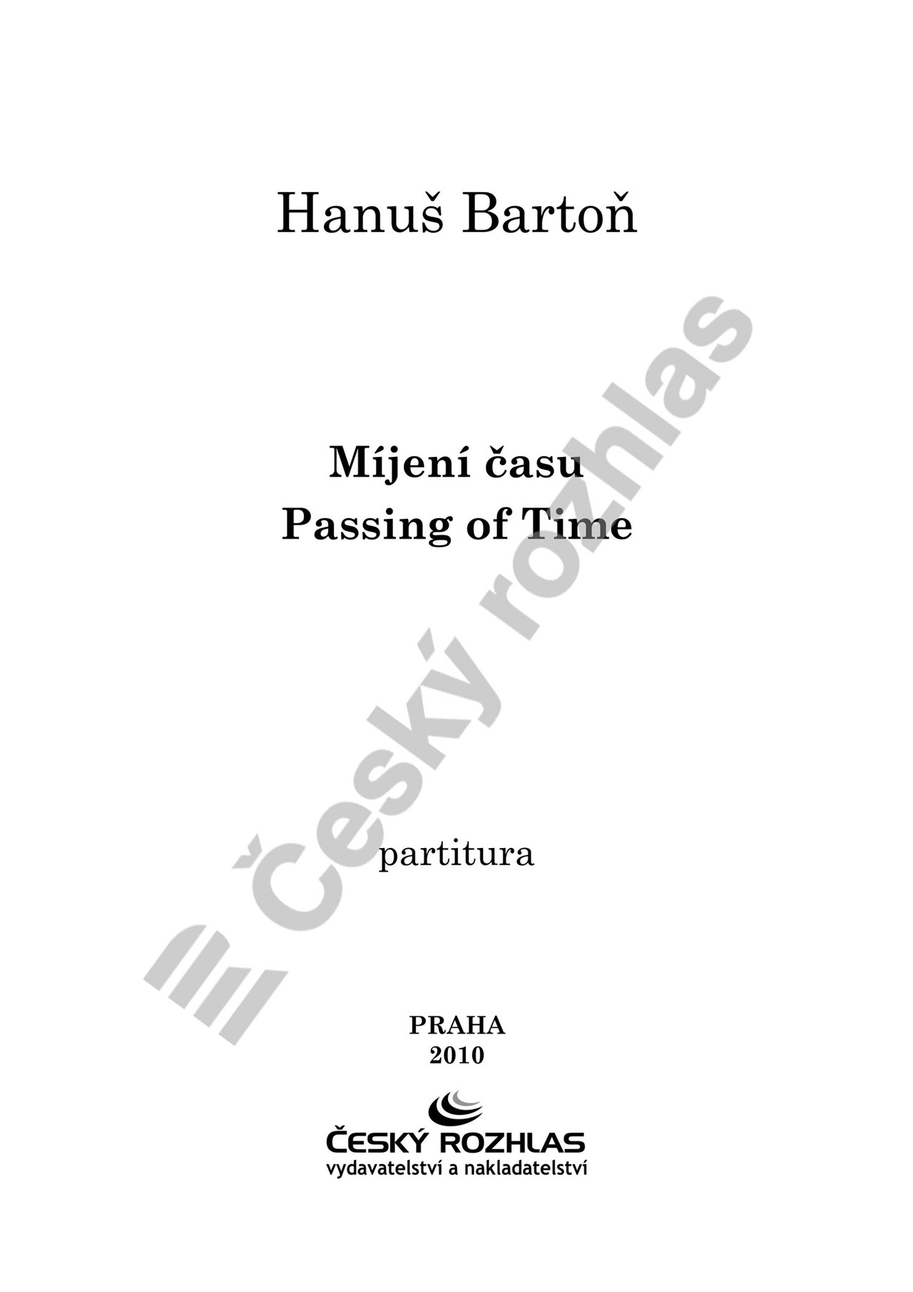 Pomalé a nenápadné harmonické změny, pravidelný puls čtvrťových hodnot a také použitý rejstřík syntezátoru, který určuje způsob instrumentace skladby, dávají hudbě výraz navozující pocit pomalého plynutí. Odtud název skladby "Míjení času". Skladba byla od roku 1999 mnohokrát provedena souborem MoEns, dále v dubnu 2008 souborem Continuum v Torontu a nejnověji 2009 norským souborem BIT 20 na Světových dnech soudobé hudby ISCM v Göteborgu.“