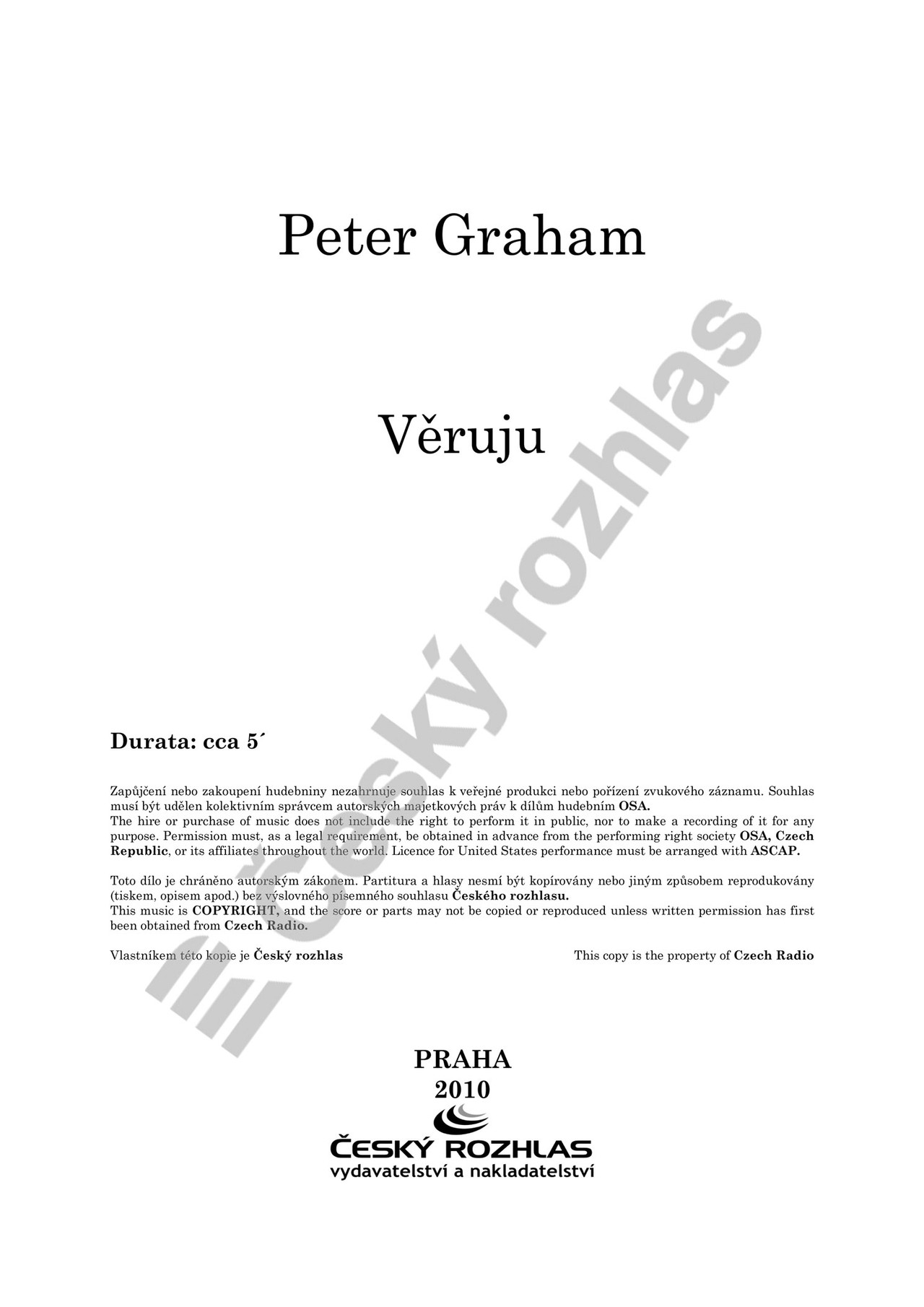 „Skladba Věruju na staroslověnský text vznikla v roce 2004 pro představení Evy Tálské Staré pověsti české (Studio Dům). Byla to vlastně jen vsuvka do většího hudebního celku pověsti O Svatoplukovi a v představení byla použita jen zčásti. V roce 2007 jsem ji revidoval a v tomto novém znění ji věnoval skladateli Romanu Bergerovi k 77. narozeninám. Nezvykle prostá sborová sazba vyžaduje odpovídající syrový přednes, evokující atmosféru rané křesťanské zbožnosti.“