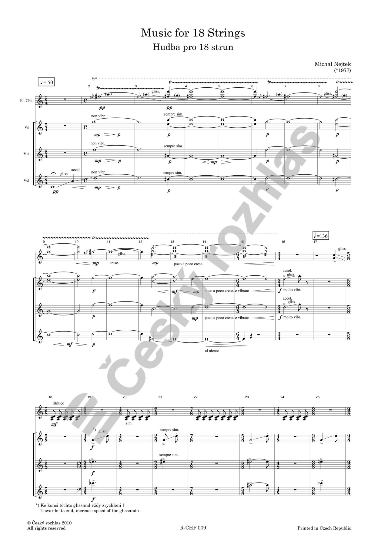 „Skladba Hudba pro 18 strun (1999) měla být původně poctou fenomenálnímu kytaristovi. Pak jsem ale prohlédl a pokorně si sám přiznal, že snaha o napodobení jeho hudby musí nutně skončit neúspěchem.