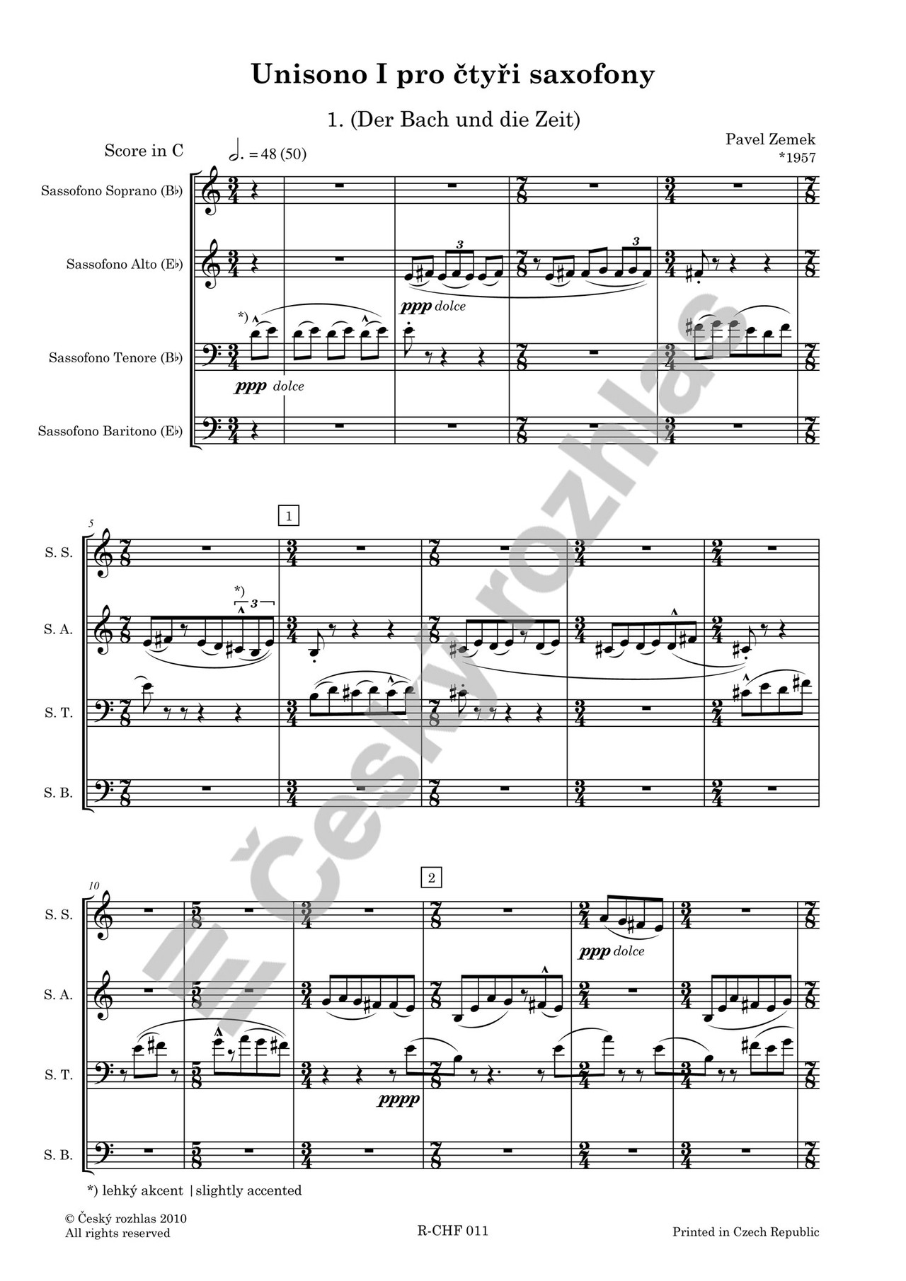 Pavel Zemek Novák: Unisono pro čtyři saxofony