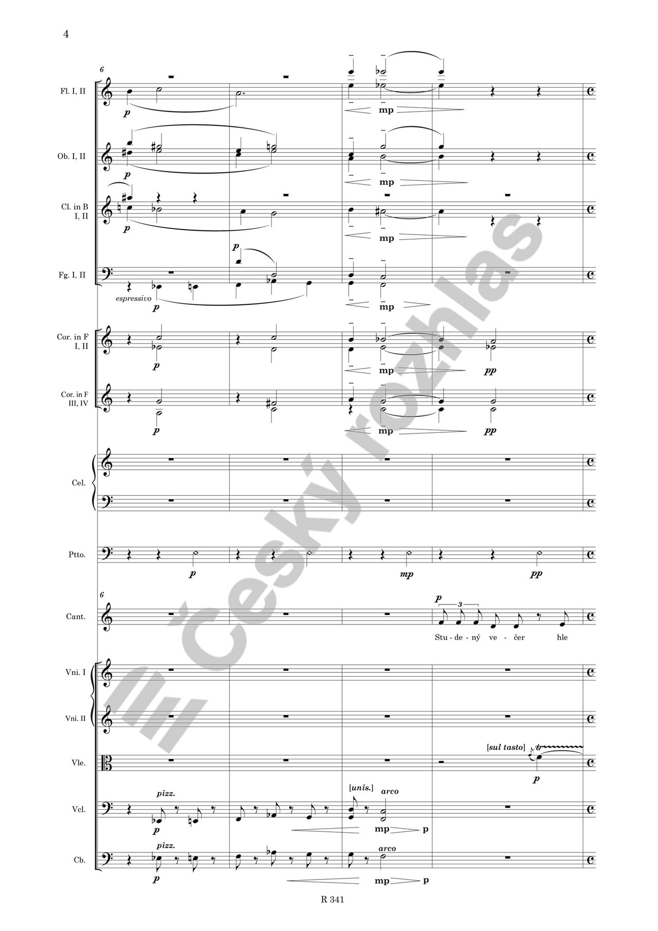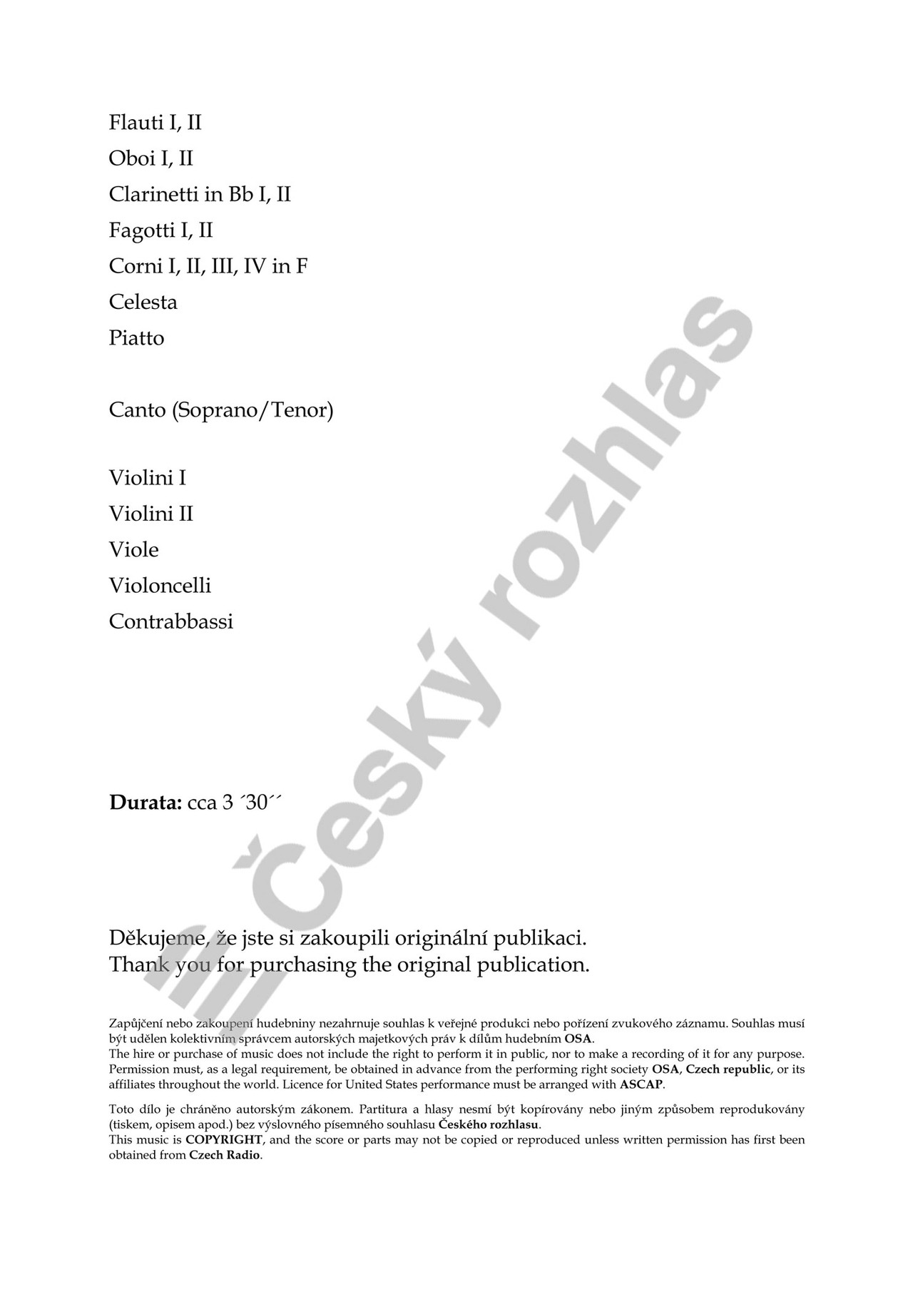 obsazení: S/T solo, 2fl, 2ob, 2cl, 2fg, 4cor, cel, ptti, archi