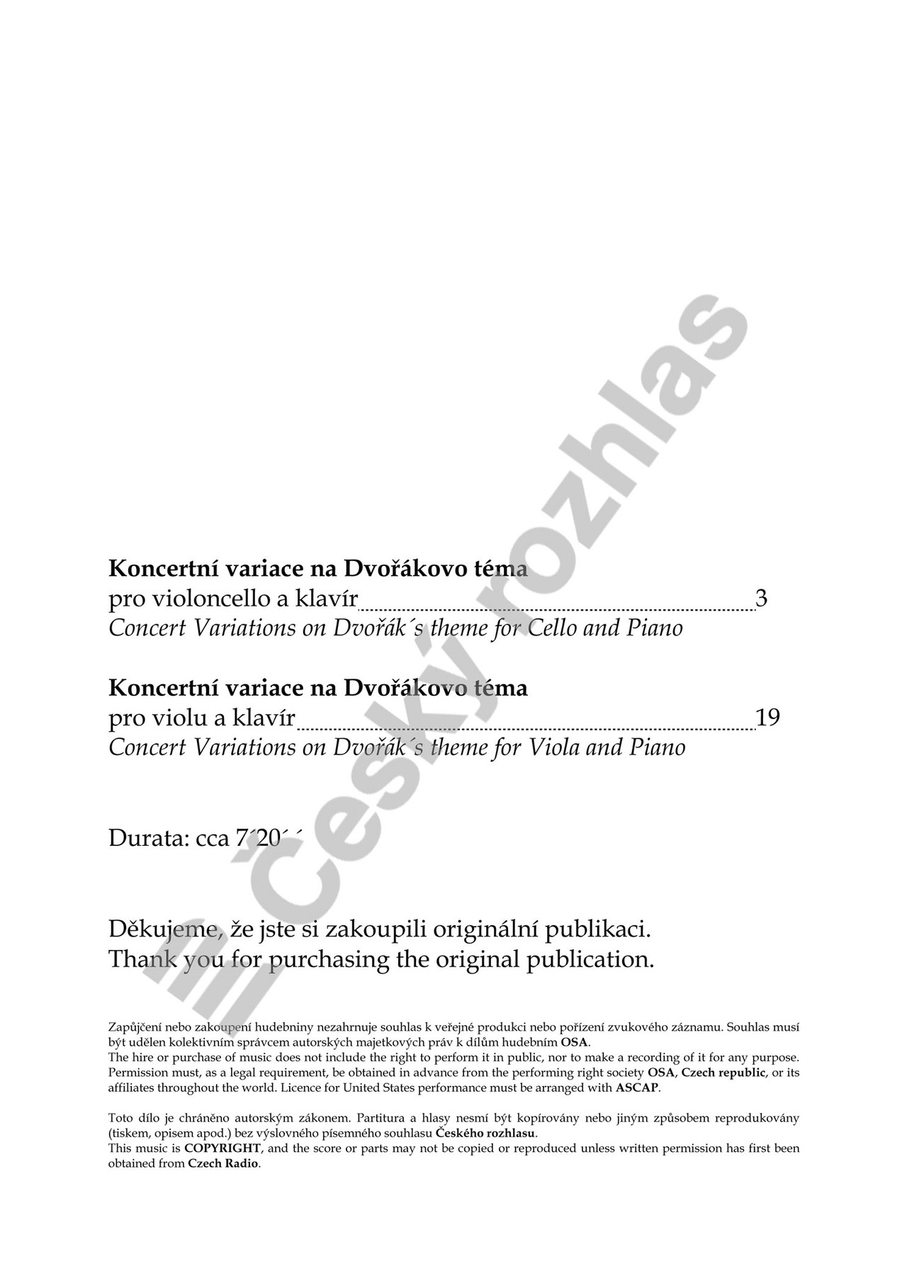 Koncertní variace na Dvořákovo téma pro violoncello nebo violu a klavír vznikly v rámci 2. ročníku Mezinárodní skladatelské soutěže Antonína Dvořáka v roce 2011, kde autor získal 1. cenu a mimořádně udělovanou cenu absolutního vítěze.