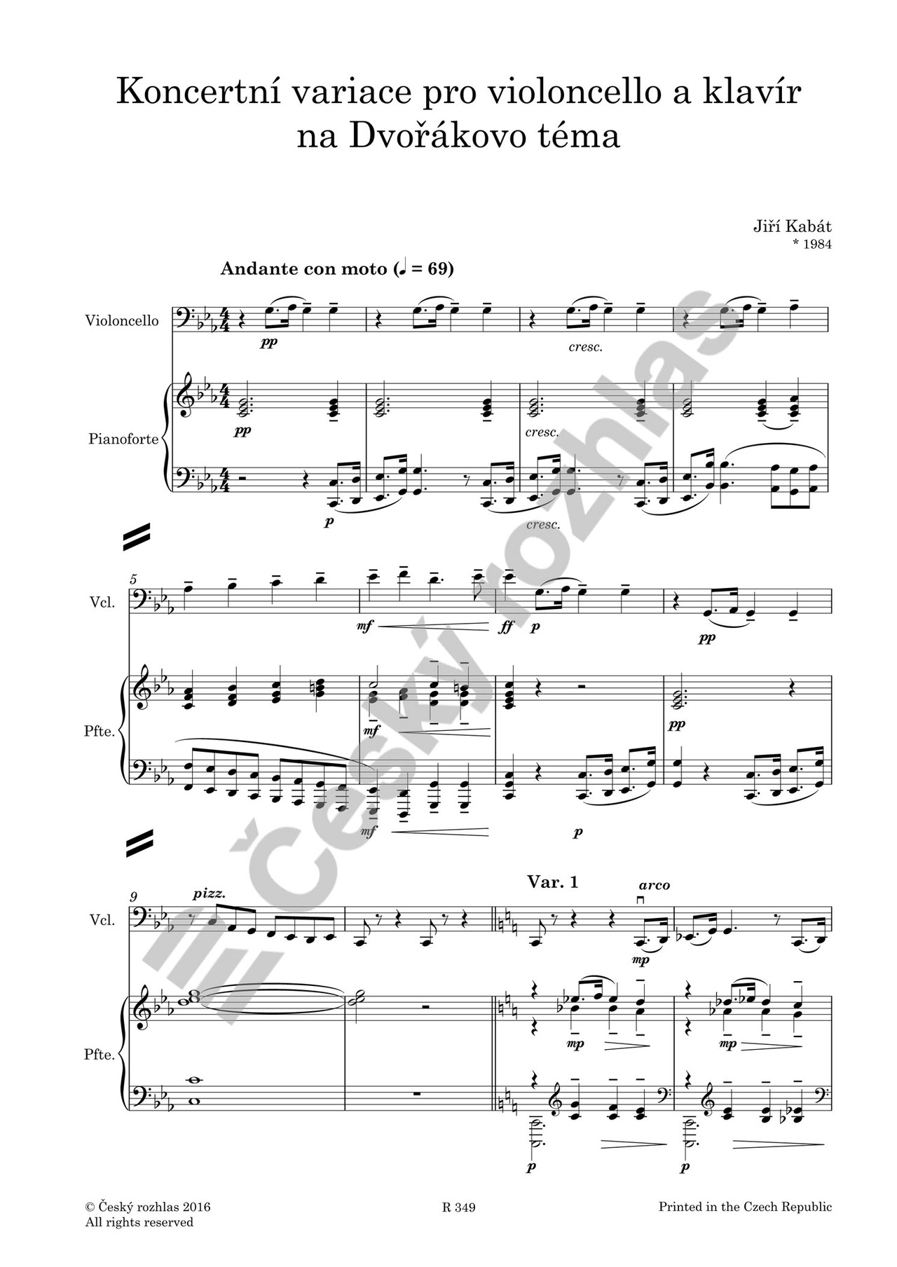 Jiří Kabát: Koncertní variace na Dvořákovo téma pro violoncello/violu a klavír