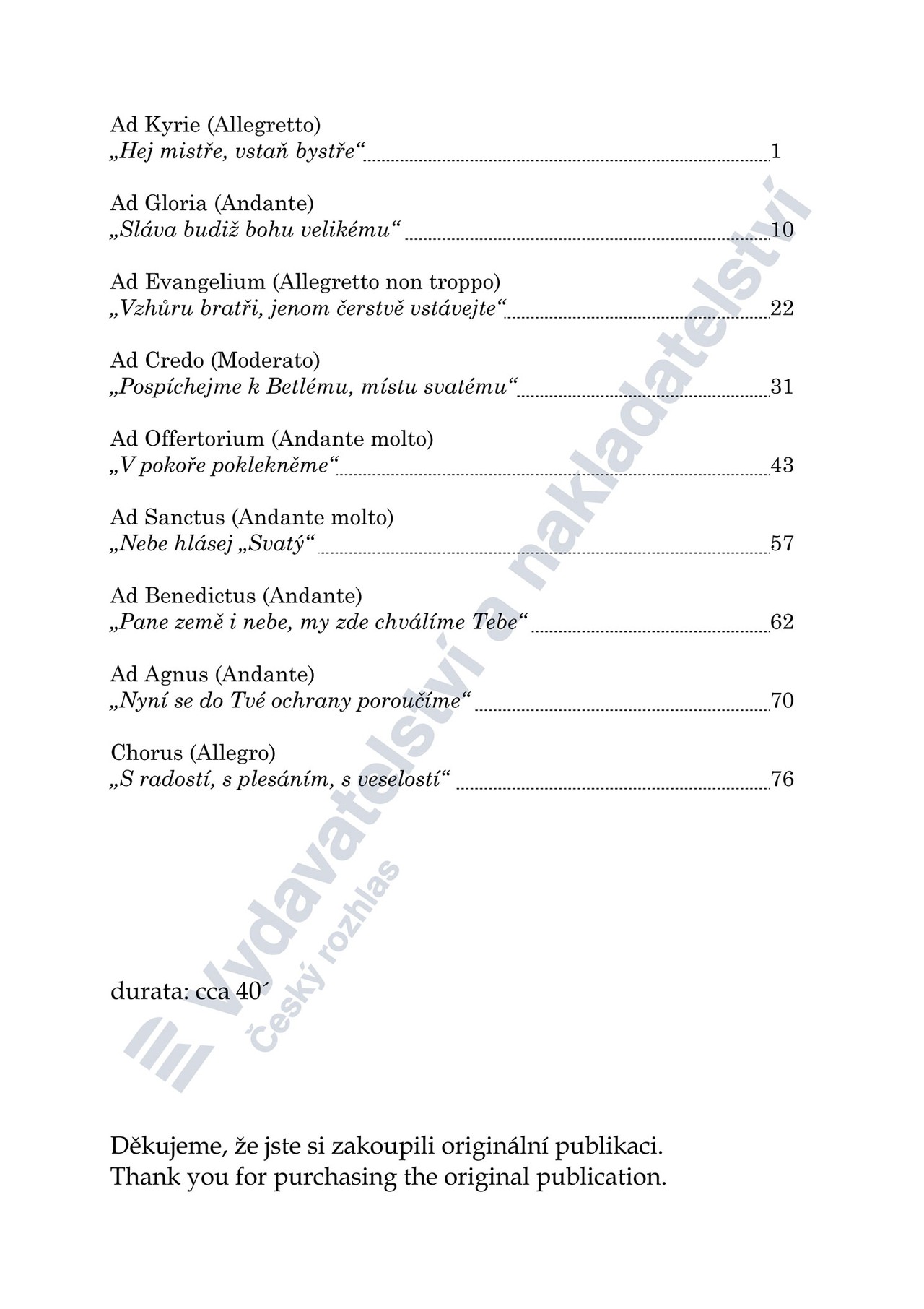 Klavírní úprava vychází z vydání partitury v Českém rozhlase z roku 2014. Tato publikace vychází z nejstaršího zachovaného opisu, jenž Českou mši vánoční uchovává v podobě dle našeho názoru nejčistší a nejpůsobivější.