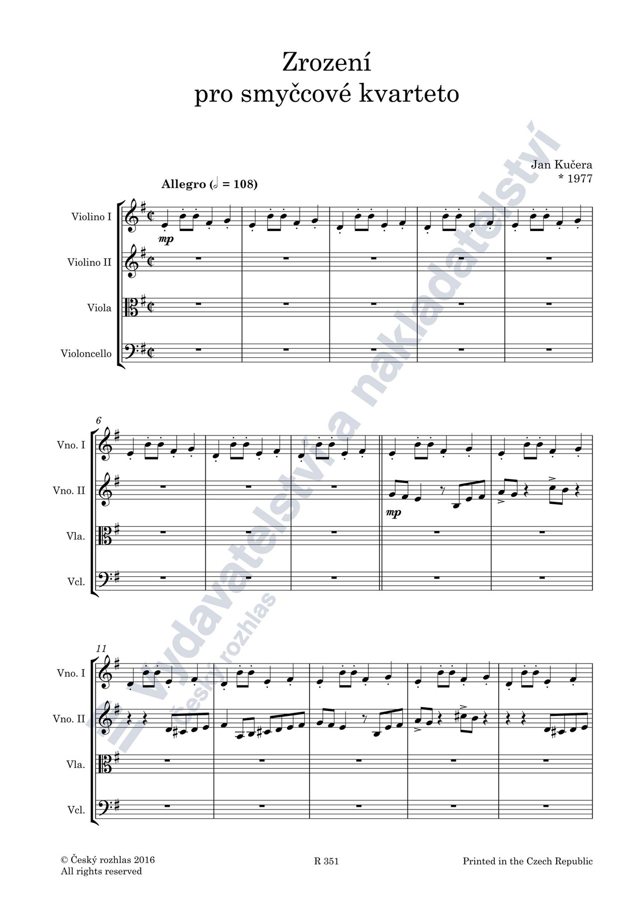 Na objednávku Symfonického orchestru Českého rozhlasu jsem vytvořil také verzi pro smyčcové kvarteto a orchestr, která zazněla v premiéře 1. února 2016 ve Smetanově síni Obecního domu v Praze." Jan Kučera