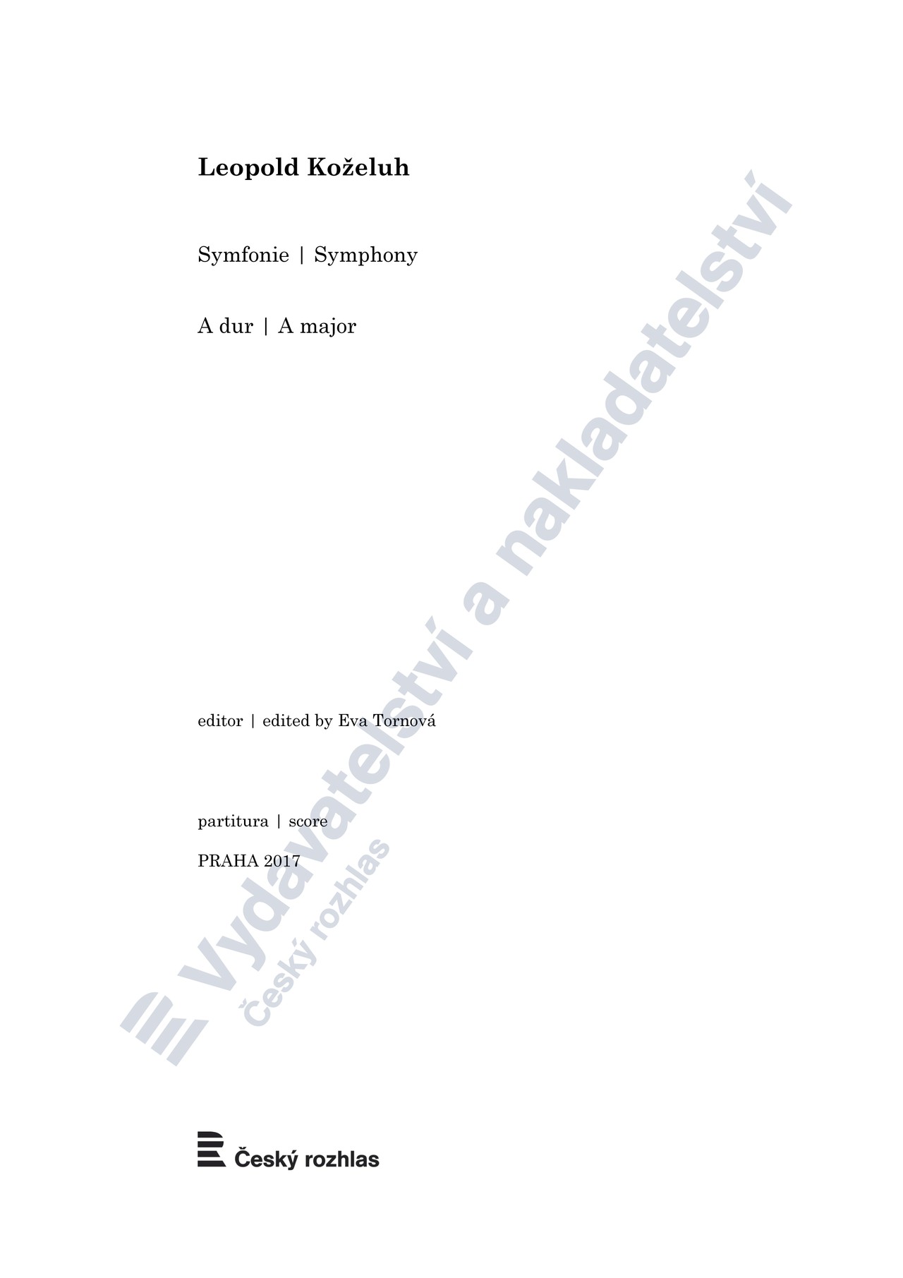 Předlohou pro vydání Symfonie A dur Leopolda Koželuha byly dva prameny uložené v Národním muzeu - Českém muzeu hudby. Výchozím pramenem byl dobový vídeňský tisk partů ze sbírky Jana Pohla uložený pod signaturou V B 205, srovnávacím pramenem dobový opis partů uložený v Českém muzeu hudby pod signaturou XI E 89. Tento pramen byl předlohou pro party fagotů, které v dobovém tisku chybí.