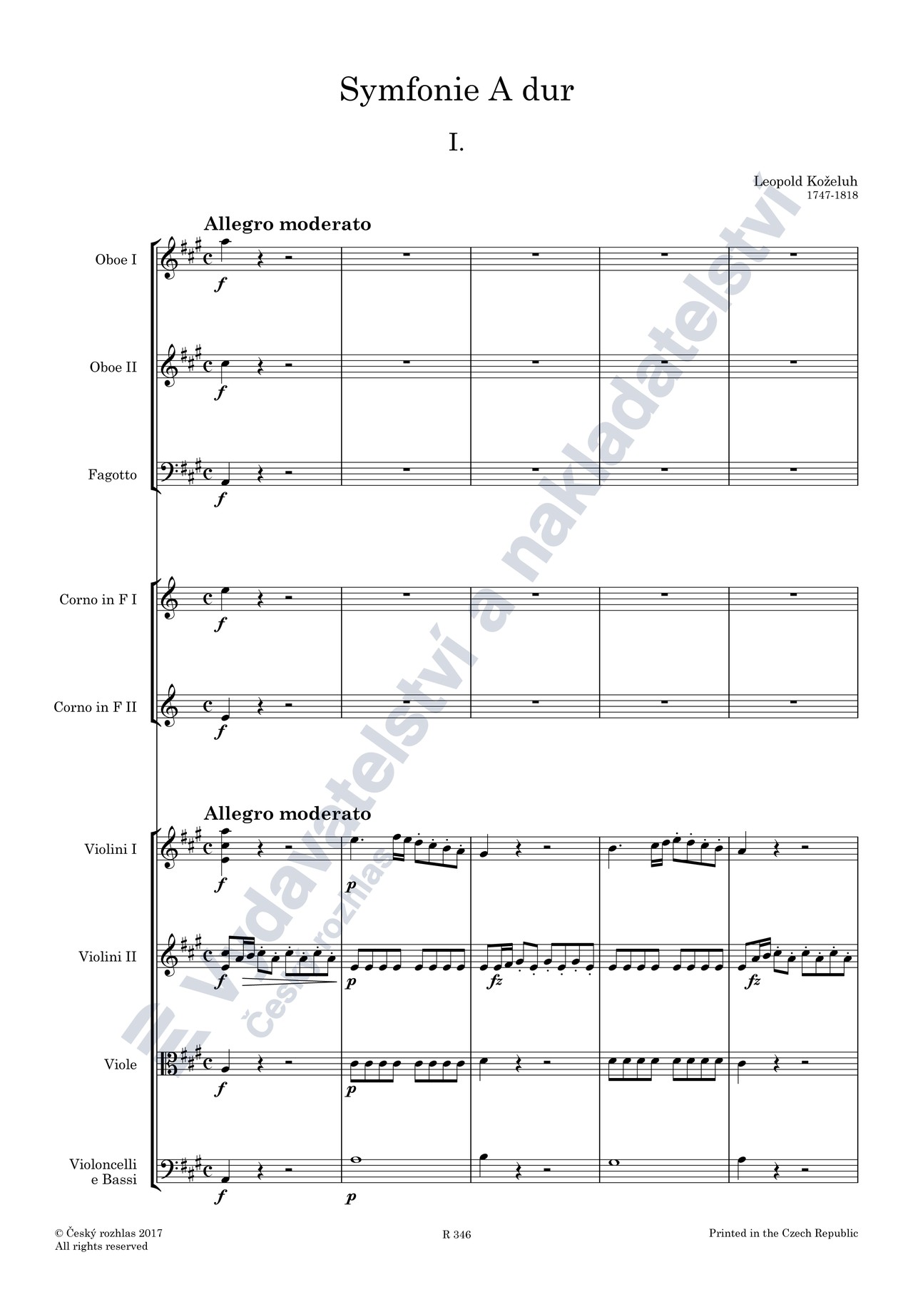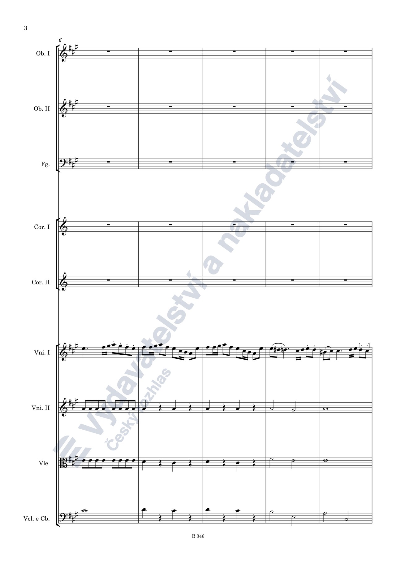 obsazení: ob I, II, fg, cor I, II in F, vni I, vni II, vle, vlc, cb