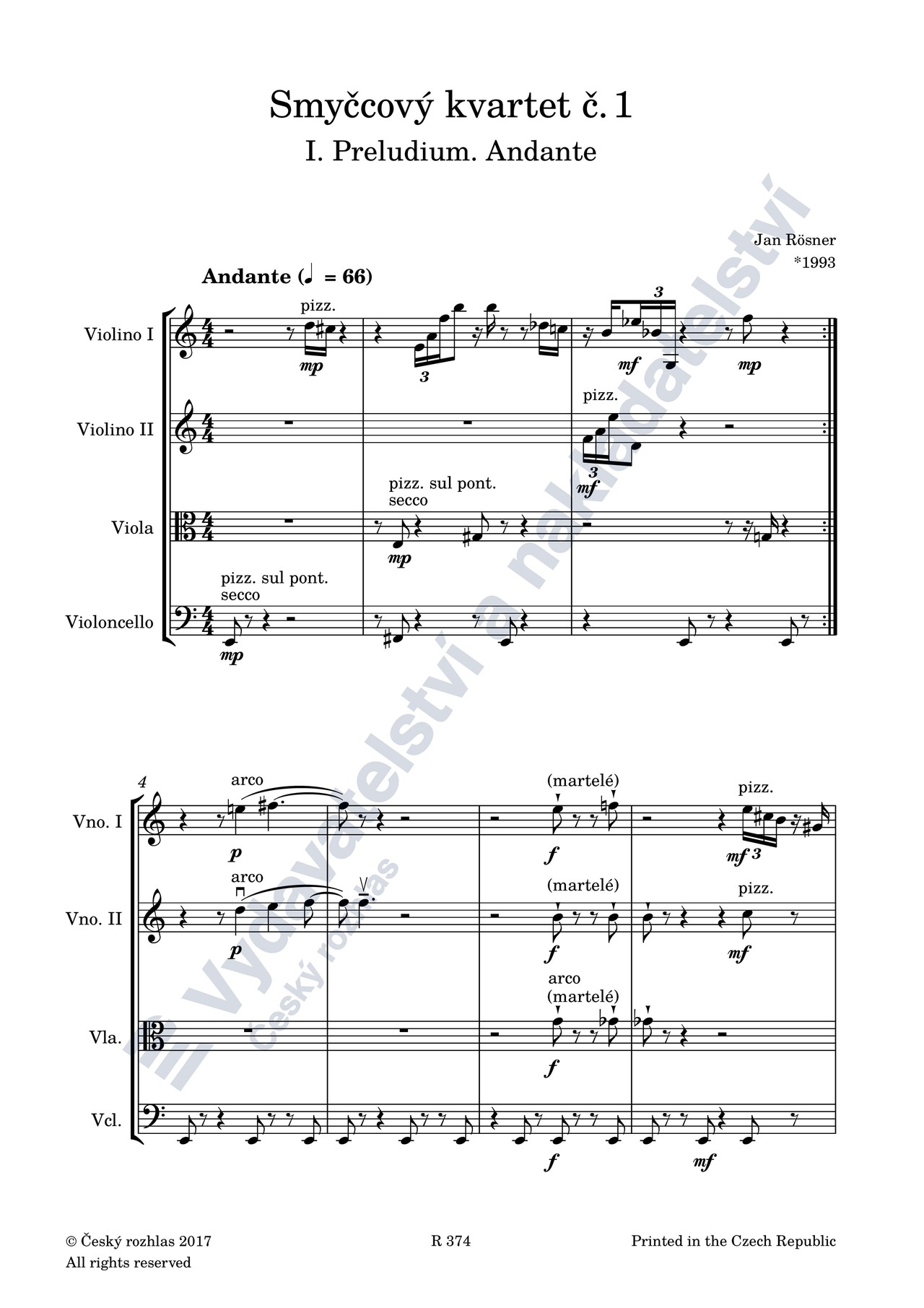 V době psaní kvartetu došlo k protestům na Maidanu a obsazení Krymu. Těsně po dopsání vypukla válka na východních hranicích. Hněv, šok a strach z těchto událostí tak otiskl svou tvář do mého kvartetu. To samozřejmě nebylo mým původním záměrem. Jedná se spíše o důsledek, kterému se v té době nebylo možné vyhnout.“ Jan Rösner