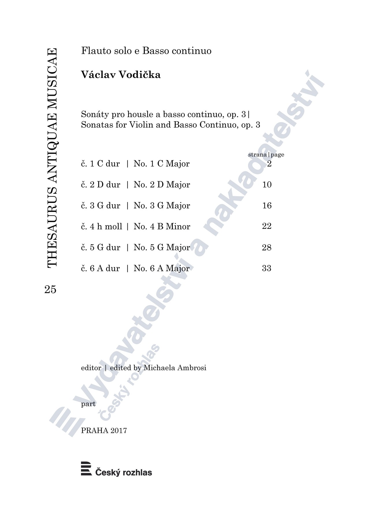 Vodičkův opus 3 vychází jako 25. svazek historické řady TAM a obsahuje tyto sonáty: