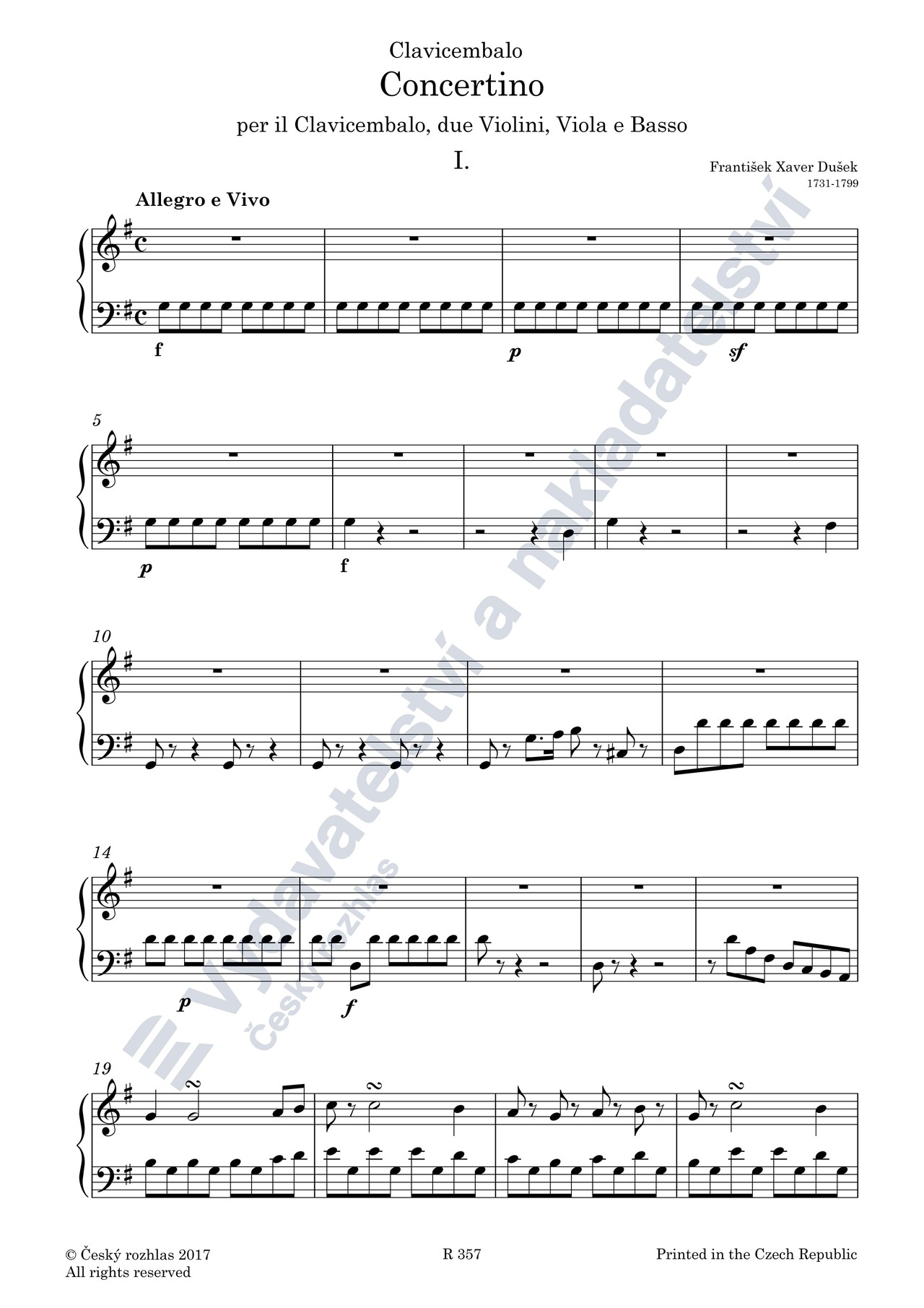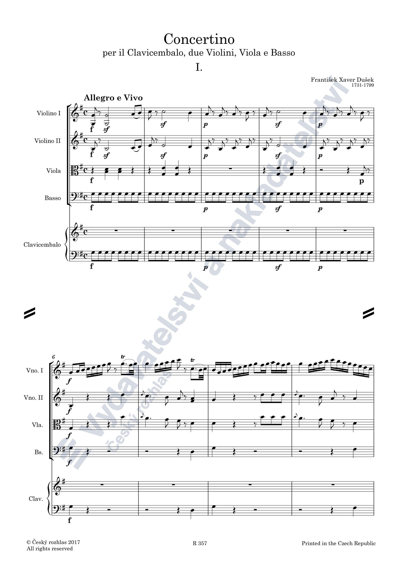 František Xaver Dušek: Concertino per il clavicembalo, due violini, viola e basso in G