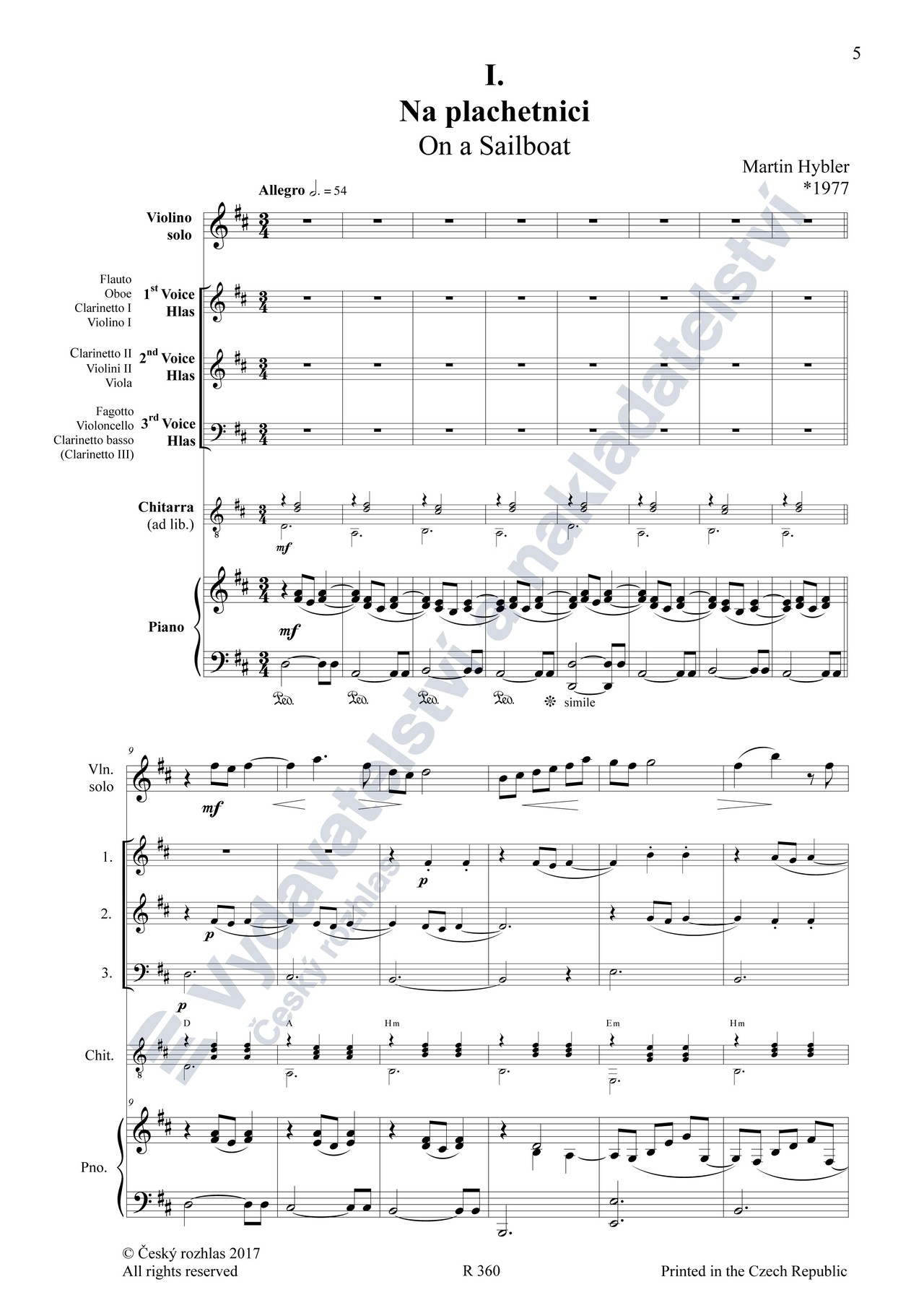 Základní obsazení, ve kterém se skladba může provozovat je duo – sólové housle a klavír (kytara), které je možné obohacovat až o tři další doprovodné hlasy. Tyto doprovodné hlasy (v partituře jsou notovány in C, party obsahují i B transpozice) je možné dále hrát na různé hudební nástroje. Počítá se i s tím, že doprovázet může třeba jen jeden nebo dva hlasy.