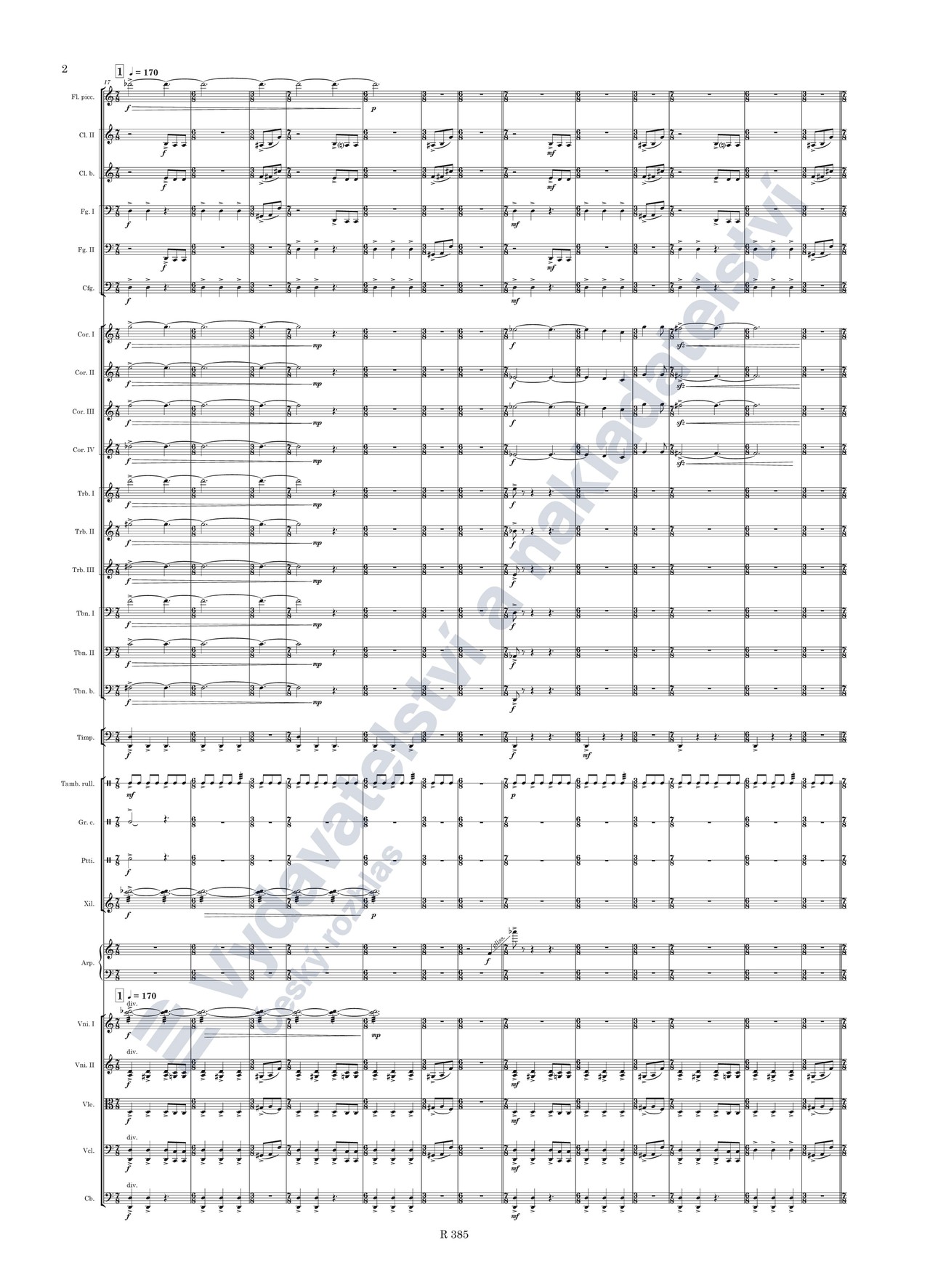 obsazení: vno I solo, vno II solo, vla solo, vcl solo, fl picc, fl I, II, ob I, II, cor ingl, cl I, II, cl b, fg I, II, cfg, cor I, II, III, IV, trb I, II, III, tbn I, II, III, timp, perc, arp, vni I, vni II, vle, vcl, cb