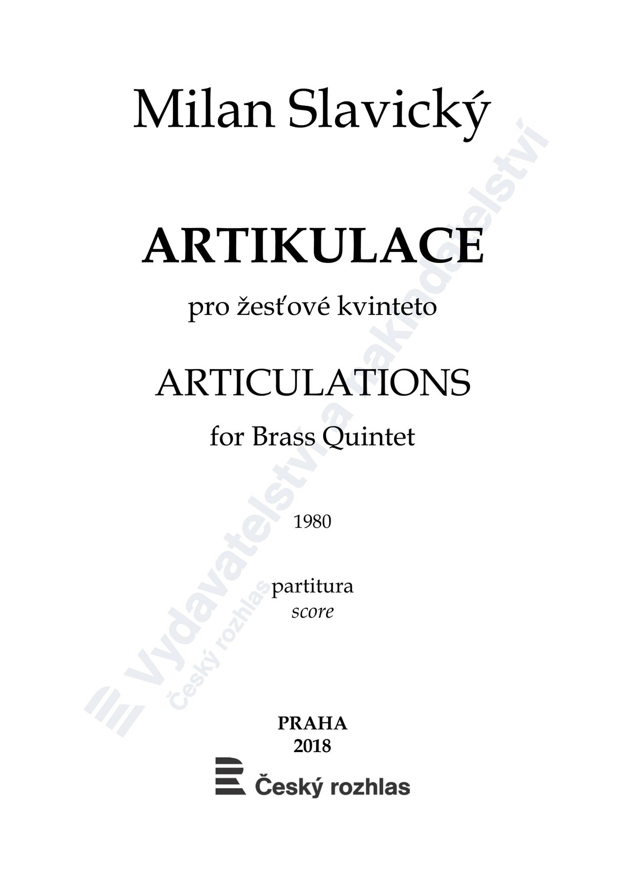 Artikulace pro žesťové kvinteto zkomponoval Milan Slavický v roce 1980 (rukopis byl dokončen 21. 5. 1980).