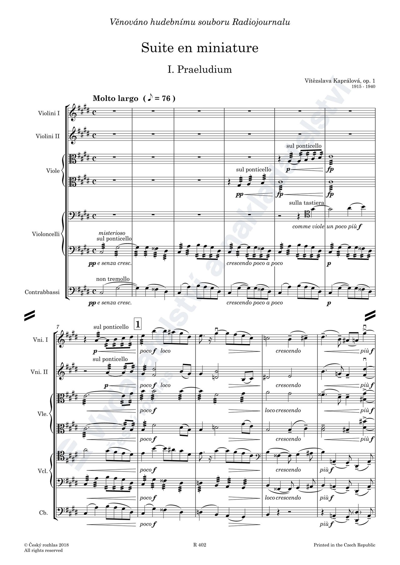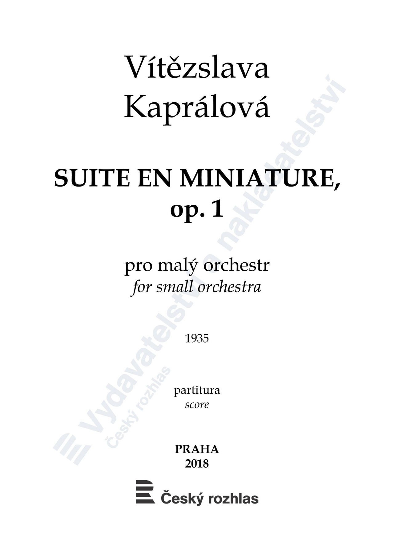 Půvabná miniaturní suita pro malý orchestr, Suite en miniature, op. 1 Vítězslavy Kaprálové, vznikla na podzim 1935, na počátku skladatelčina studia u Vítězslava Nováka na mistrovské škole pražské konzervatoře.