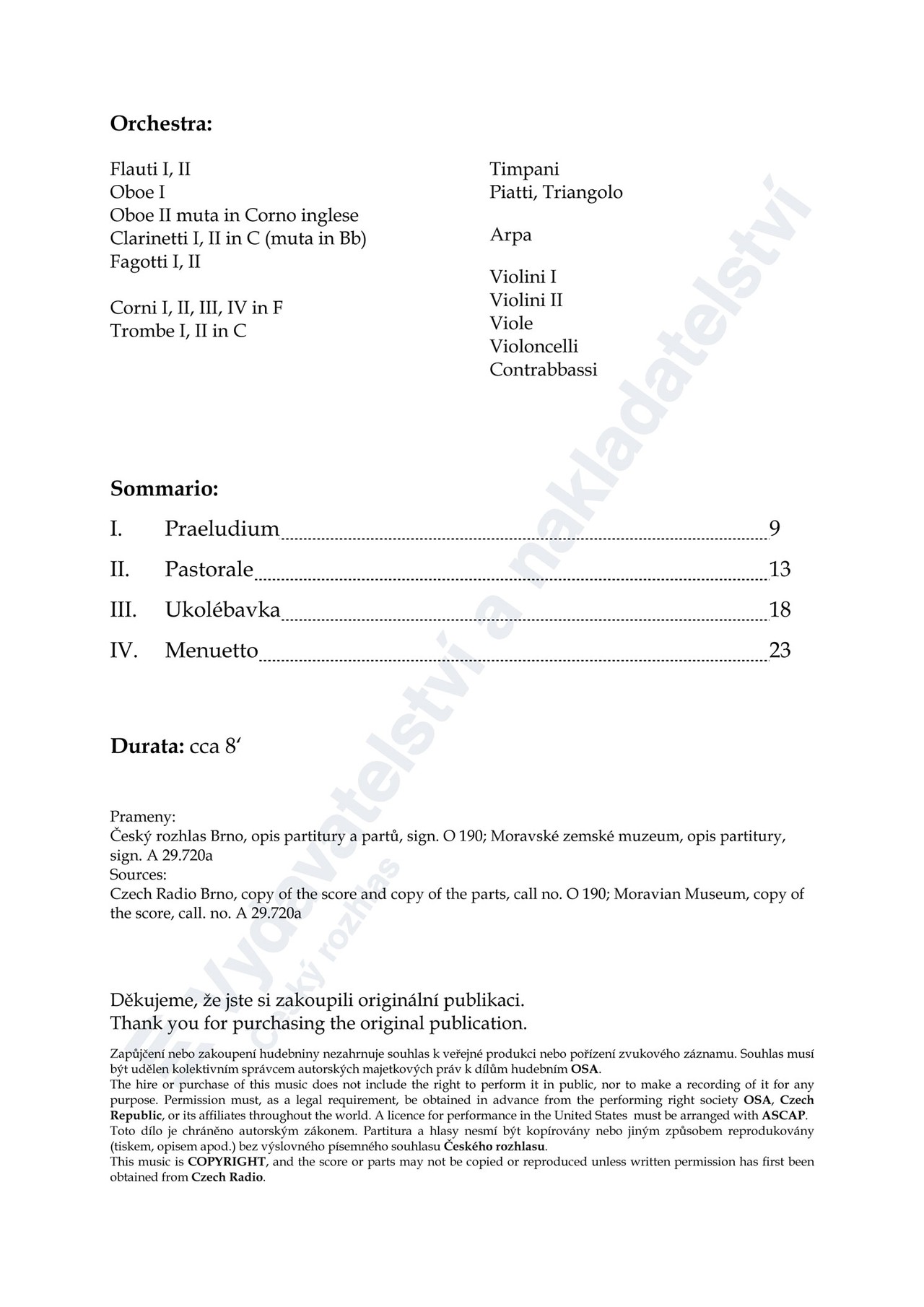 obsazení: fl picc, fl I, II, ob I, II (cor ingl), cl I, II, fg I, II, cor I, II, III, IV, trb I, II, , timp, ptto, trgl, arp, vni I, II, vle, vlc, cb