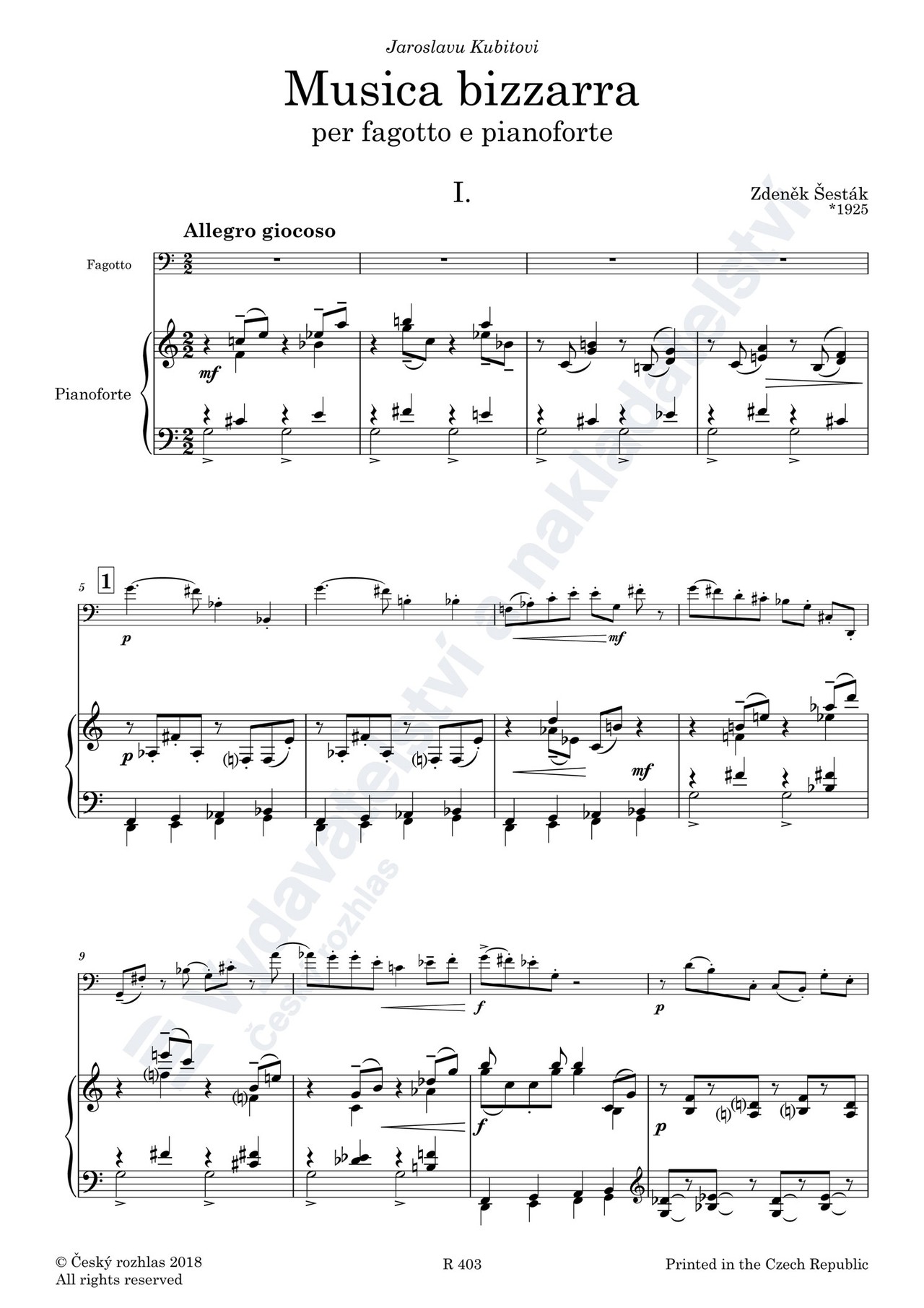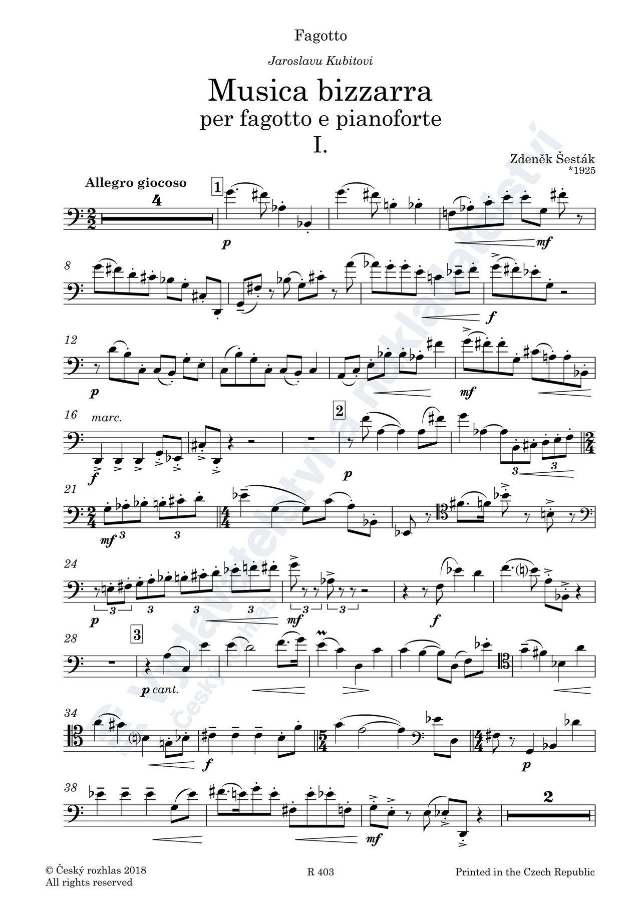 Zdeněk Šesták: Musica bizzarra per fagotto e pianoforte