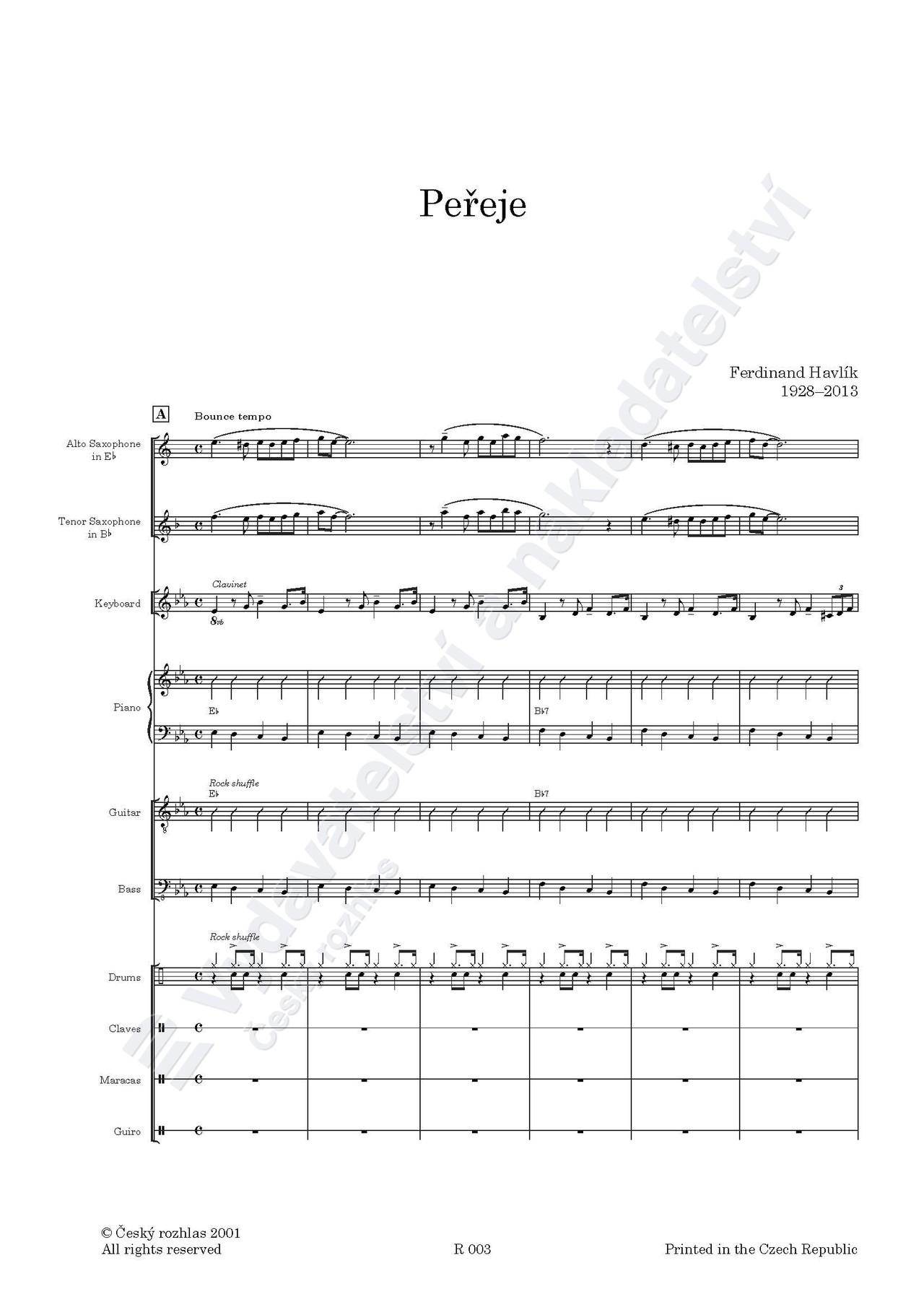 Skladba Peřeje je komponována k příležitostem estrád komentovaných protagonisty Semaforu. Do zvuku estrádního orchestru s rozšířenou sadou drums jsou zasazena dvě sóla obou saxofonů - altového a barytonového.