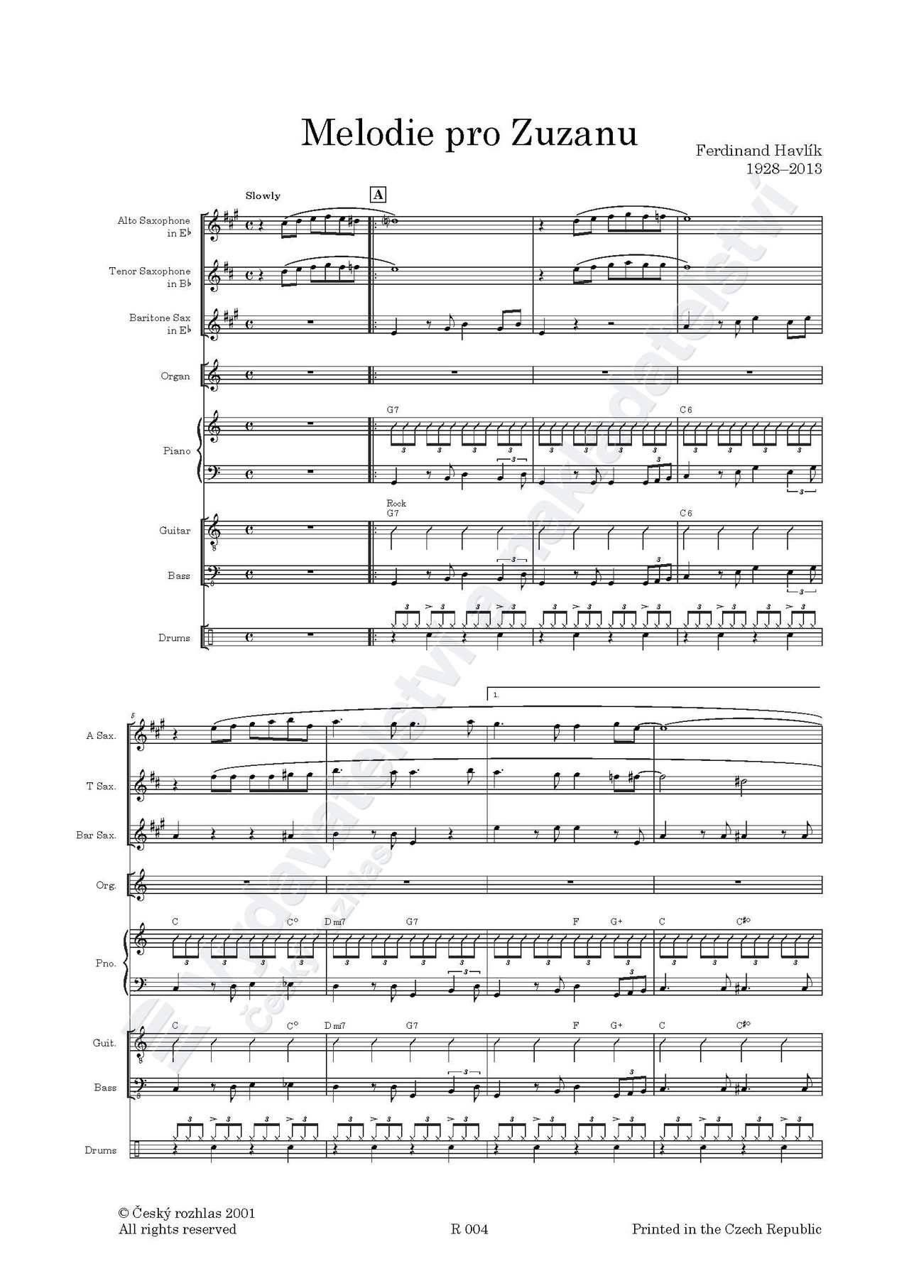 Melodie pro Zuzanu je vzpomínka na cyklus her spojených se Zuzanou. Basová linka dvou saxů je obarvena zvukem barytonsaxofonu. Ostatní obsazení tvoří obvyklý zvuk semaforského bandu.