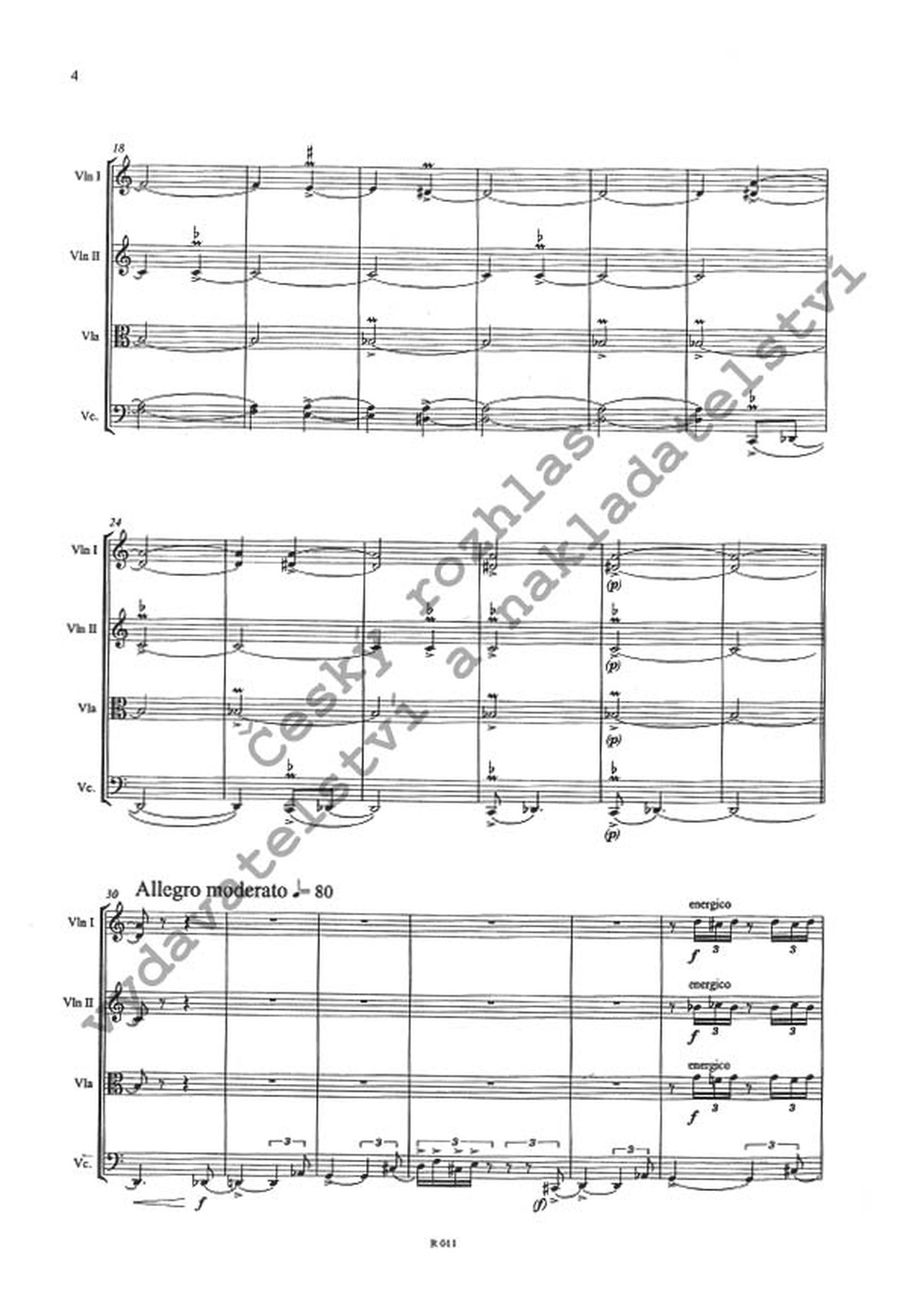 Smyčcový kvartet psaný s hlubokým porozuměním pro způsob kvartetní hry i její zvuk.