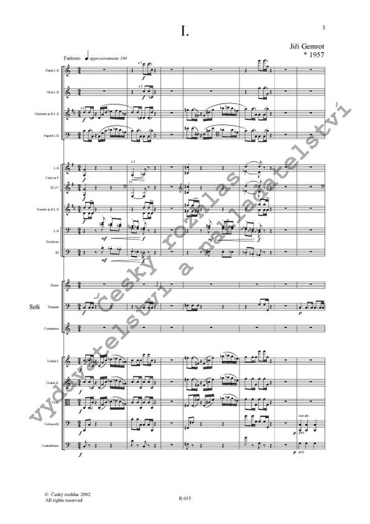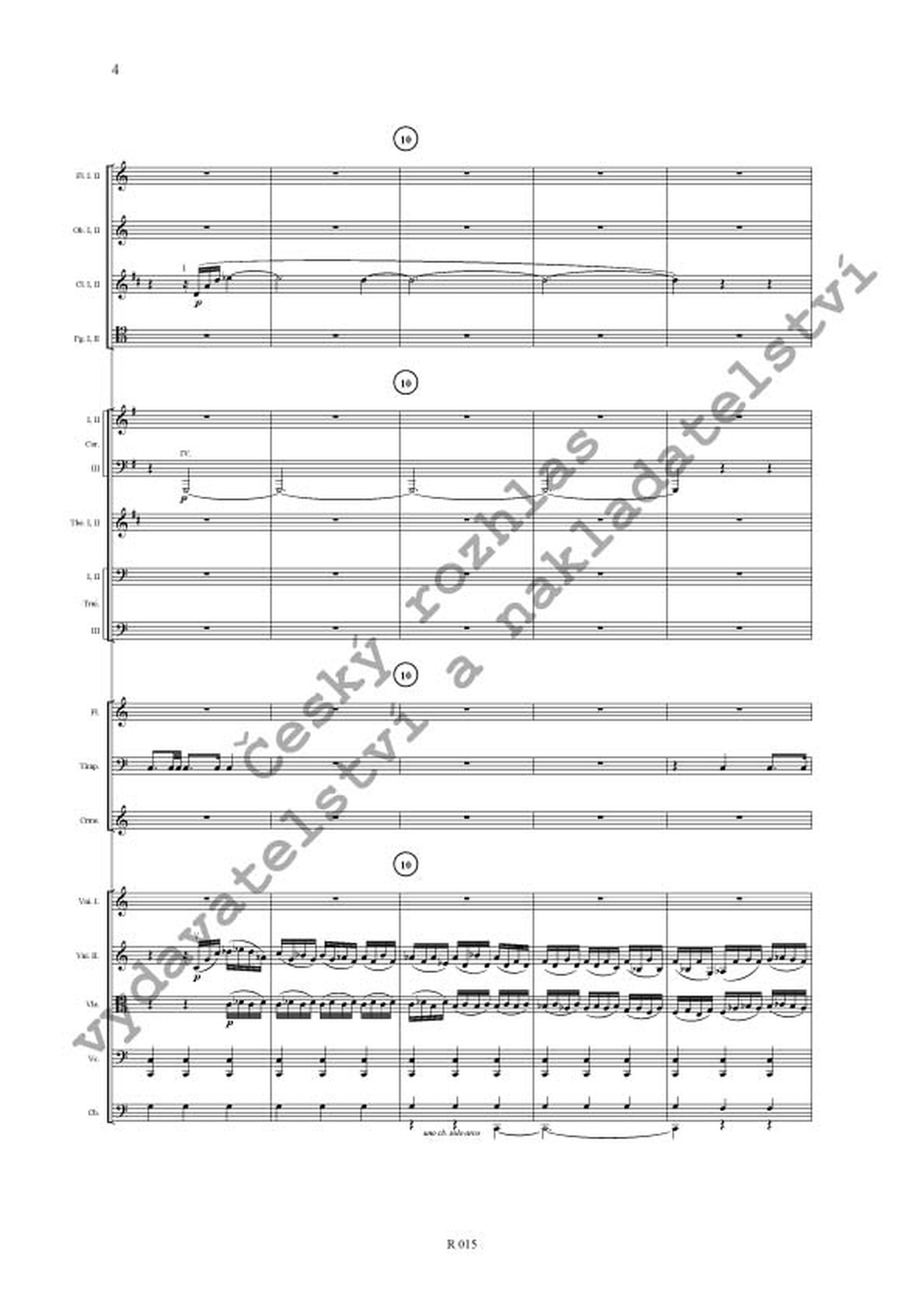 obsazení: tymp, fl, cornamusa - soli, 2fl, 2ob, 2cl, 2fg, 4cor, 2trp, 3trb, archi