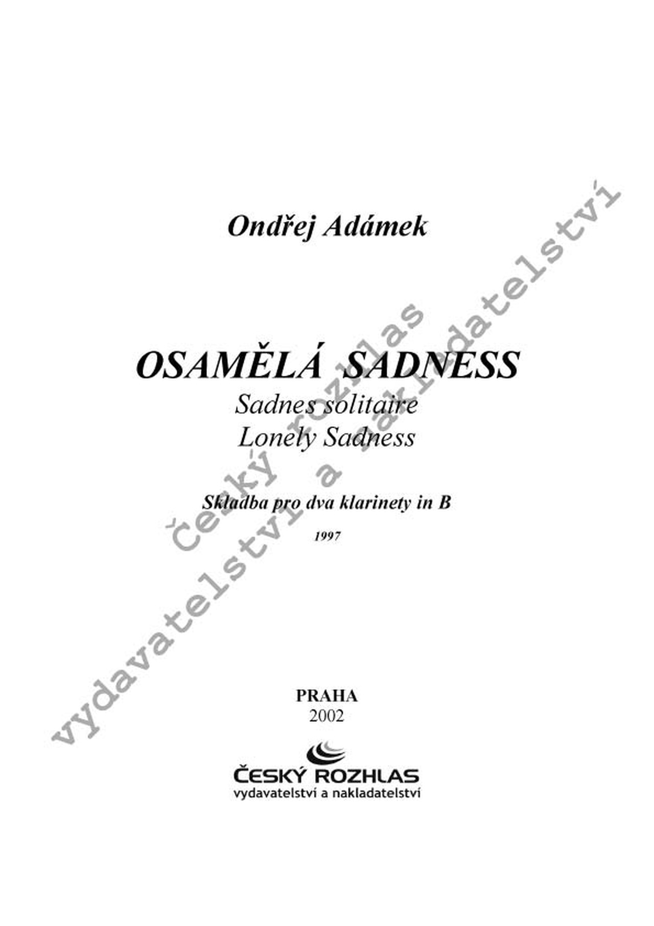 Skladba Osamělá Sadness je prostorovou kompozicí. Přemisťování interpretů v sále tvoří formální základ skladby, má částečně i mimohudebni podtext, neboť vykresluje různé situace ve vztahu dvou lidí.