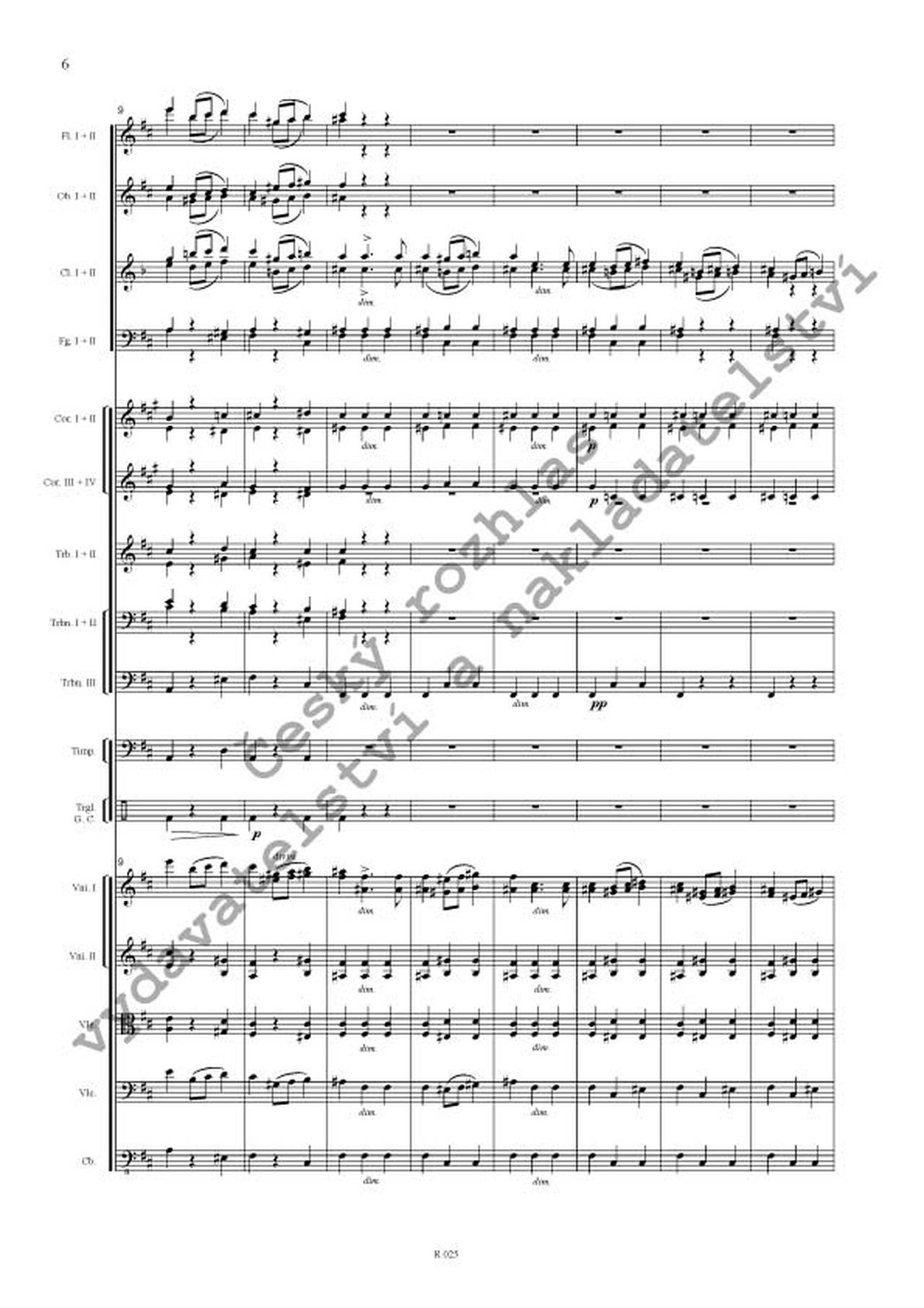 obsazení: 2fl, 2ob, 2cl, 2fg, 4cor, 2trp, 3trb, timp, triangolo, piatti, tamb grande, archi
