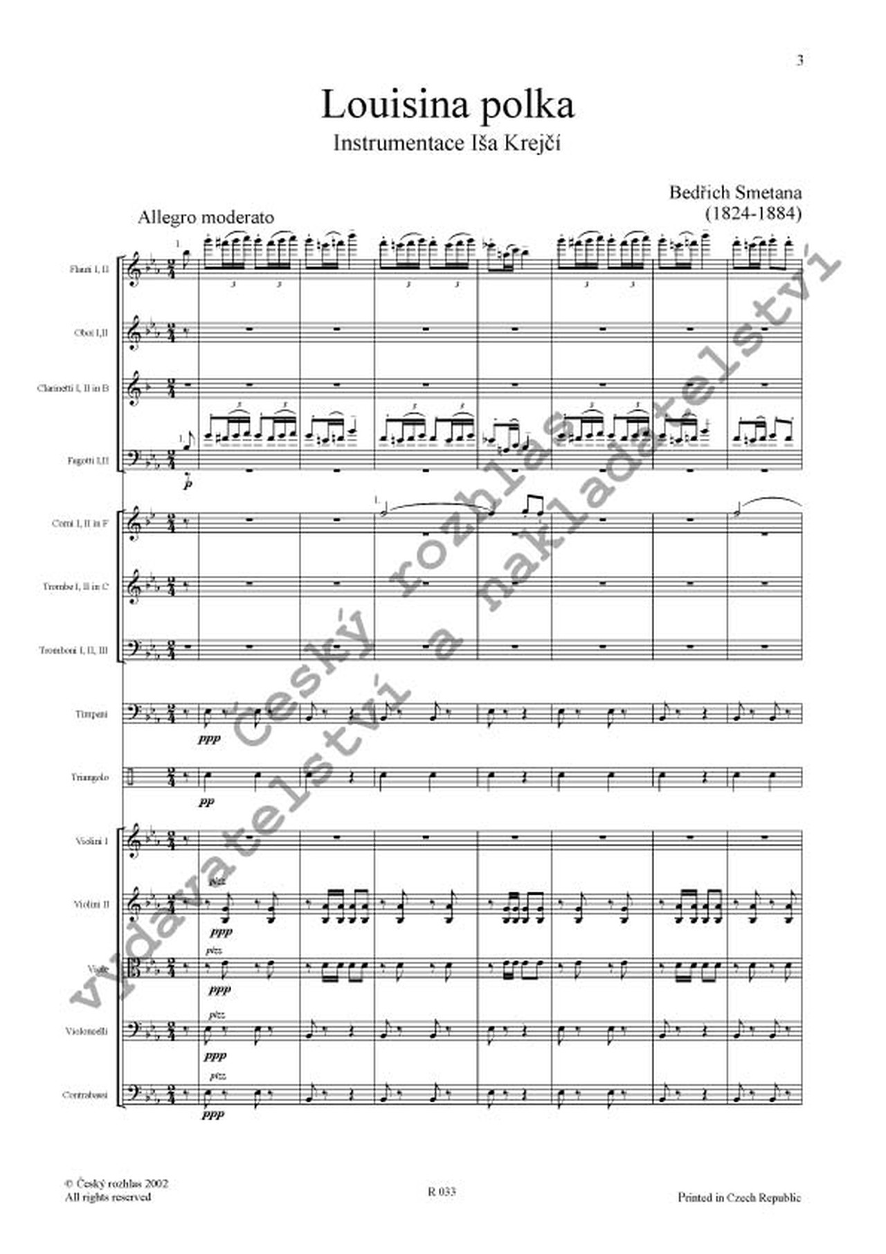 Louisina polka, Ze studentského života a Jiřinková polka. Tato raná klavírní díla Bedřicha Smetany pro orchestr v roce 1943 upravil skladatel Iša Krejčí, který v letech 1934 - 1945 působil v Československém rozhlase jako hudební režisér a dirigent.
