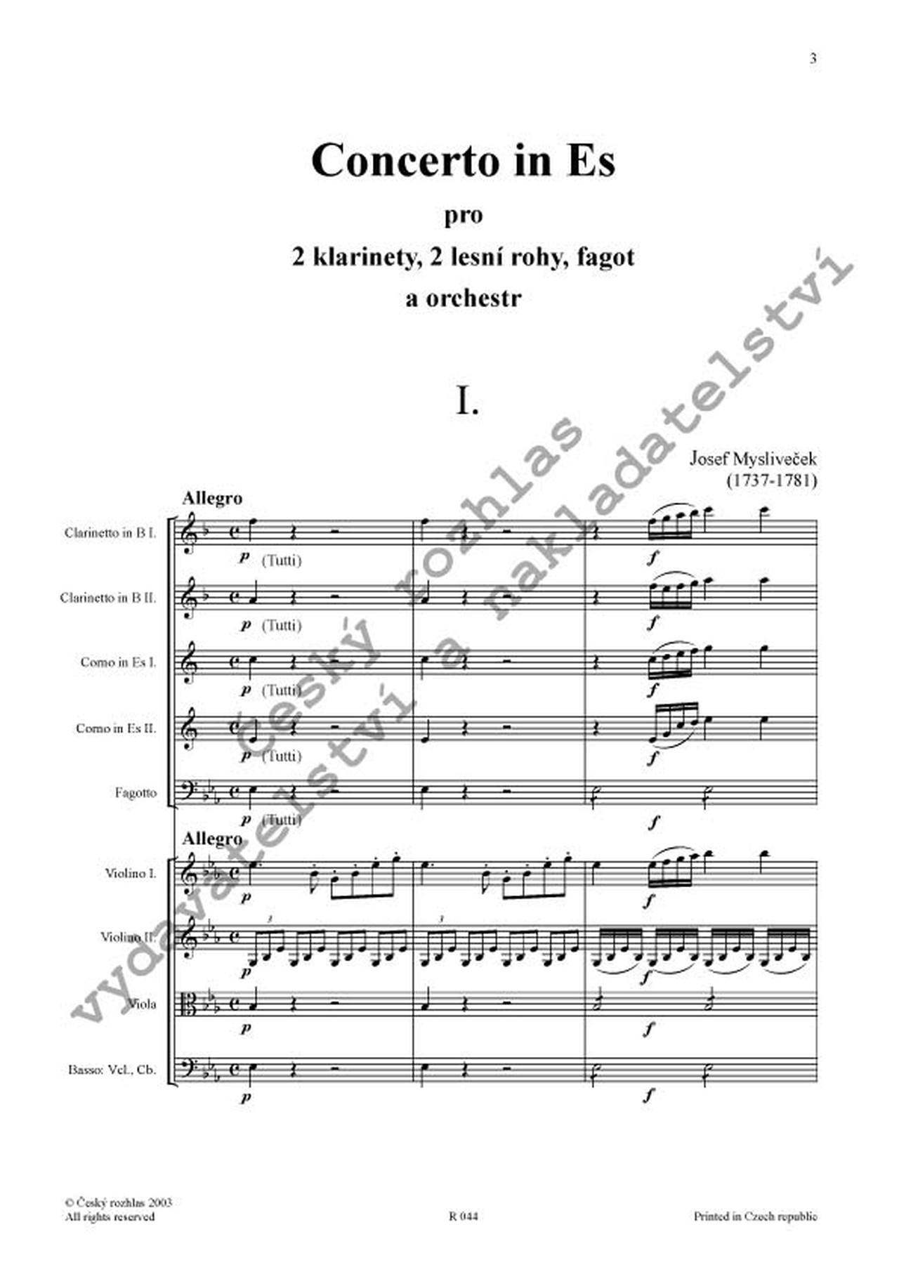 Archiv knížecího rodu Thurn-Taxisů v Řezně /Regensburg - Německo/ uchovává cennou sbírku historických hudebnin. Materiál sloužil potřebám knížecí kapely. Tato sbírka je zajímavá mimo jiné tím, že se v ní nachází velké množství koncertantních skladeb pro dechové nástroje s doprovodem orchestru. Značná část těchto skladeb je věnována klarinetu. Vedle autorů převážně německého původu, jako jsou Paul Anton Winneberger, Joseph Schierll, Heinrich de Croes, Theodor von Schacht aj., obohatili tehdejší klarinetový repertoár i čeští skladatelé František Xaver Pokorný, Václav Kněžek, František Haniš a Josef Mysliveček.V Koncertu Es dur pro 2 klarinety, 2 lesní rohy, fagot a orchestr bylo nutno v partech opravit drobné chyby, doplnit a sjednotit frázování i dynamiku. V partech dechových nástrojů pak upřesnit označení úseků orchestrálních /Tutti/ a sólových /Soli/. Kadence v 1. a 3. větě jsou původní.