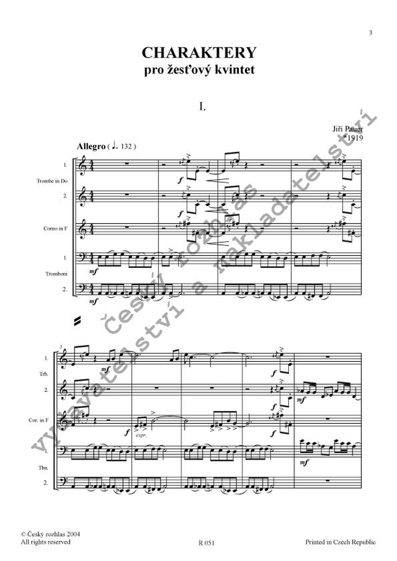 Jiří Pauer: Charaktery pro žesťové kvinteto