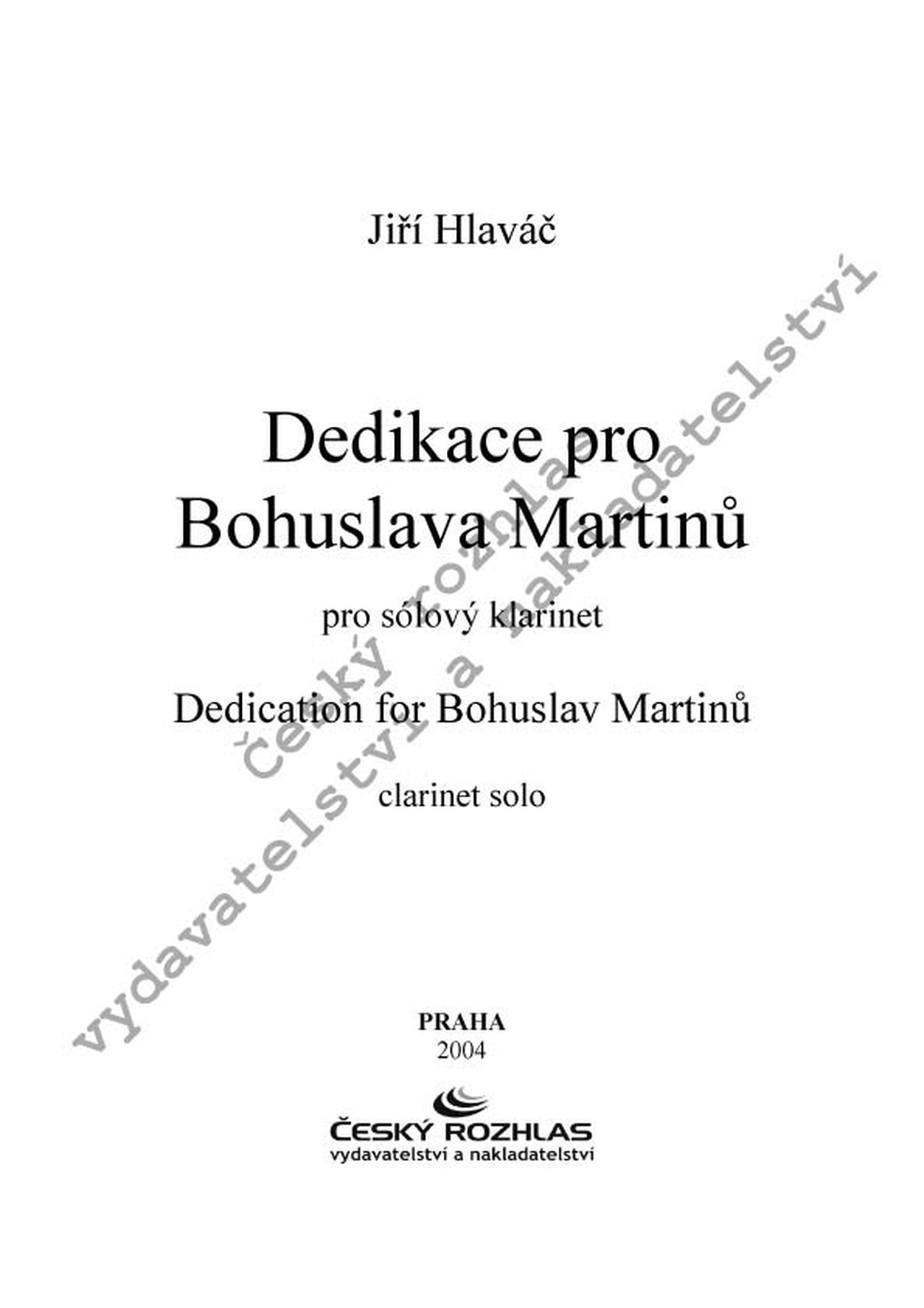 Jiří Hlaváč: Dedikace pro Bohuslava Martinů