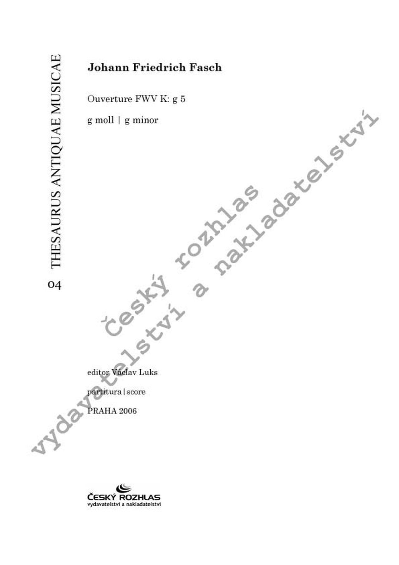 Ouverture g moll Johanna Friedricha Fasche (1688 - 1758), představitele vrcholně barokní instrumentální hudby a současníka J. S. Bacha, vychází jako v pořadí čtvrtý titul historické řady Thesaurus Antiquae Musicae.