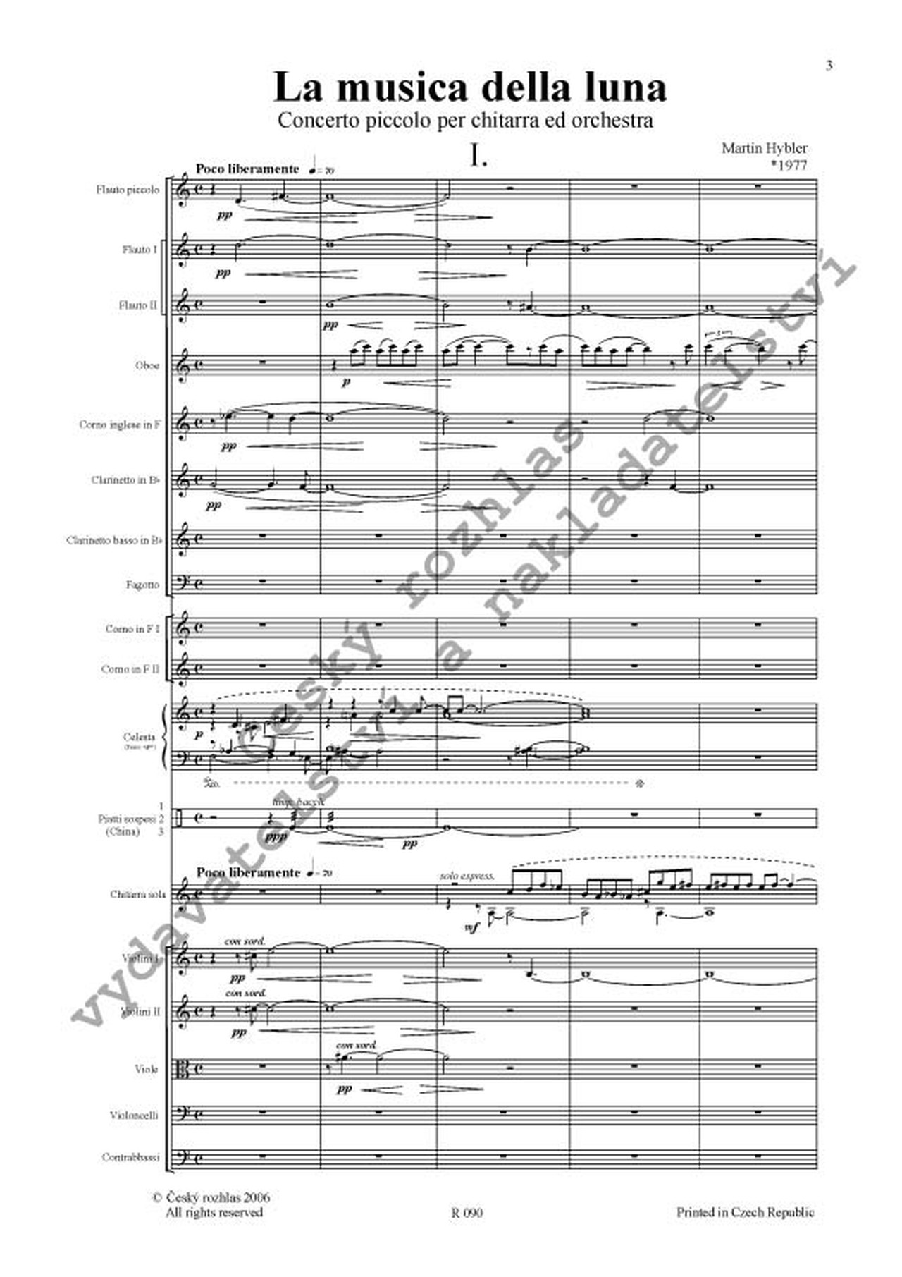 „Koncert pro kytaru a komorní orchestr La musica della luna (Měsíční hudba) je třívětá kompozice, kterou jsem napsal v roce 2001, původně pro kytaru a klavír, a v roce 2005 jsem part klavíru instrumentoval.