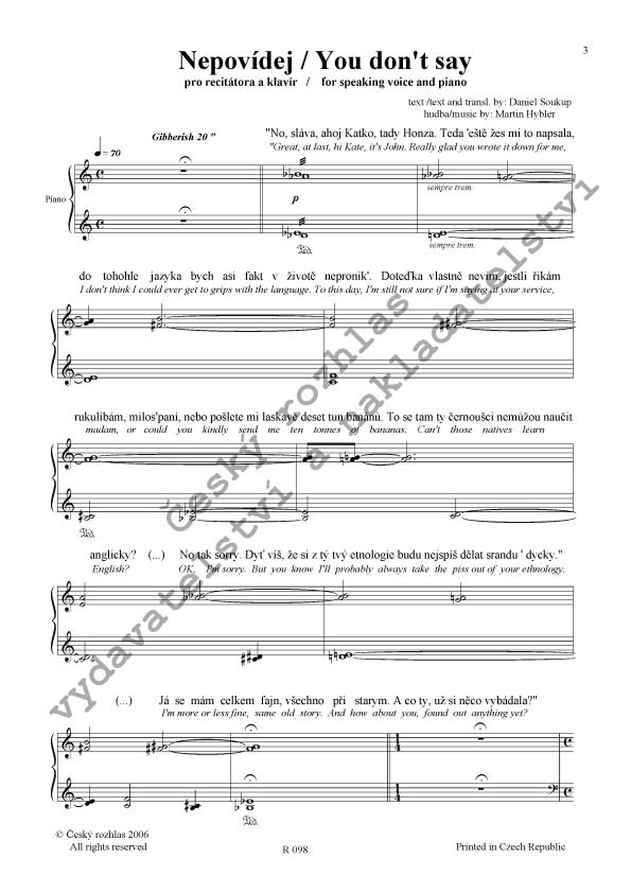 Nepovídej – melodram pro recitátora a klavír vznikl v roce 2001 na civilní text Daniela Soukupa.