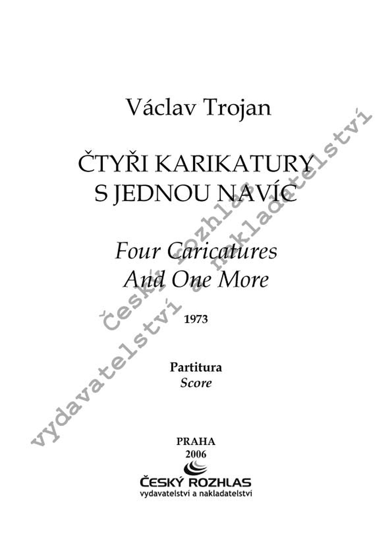 Koncertní tvorba Václava Trojana (1907 - 1983) zůstala poněkud ve stínu mezinárodních úspěchů jeho hudby pro film - ostatně řada Trojanových koncertních skladeb vznikla dodatečnou úpravou původně filmové hudby nejčastěji do podoby vícevětých suit. Do jisté míry to platí i o Trojanově znamenité, zvukově barvité a osobitým hudebním humorem překypující pětidílné suitě s názvem Čtyři karikatury s jednou navíc.