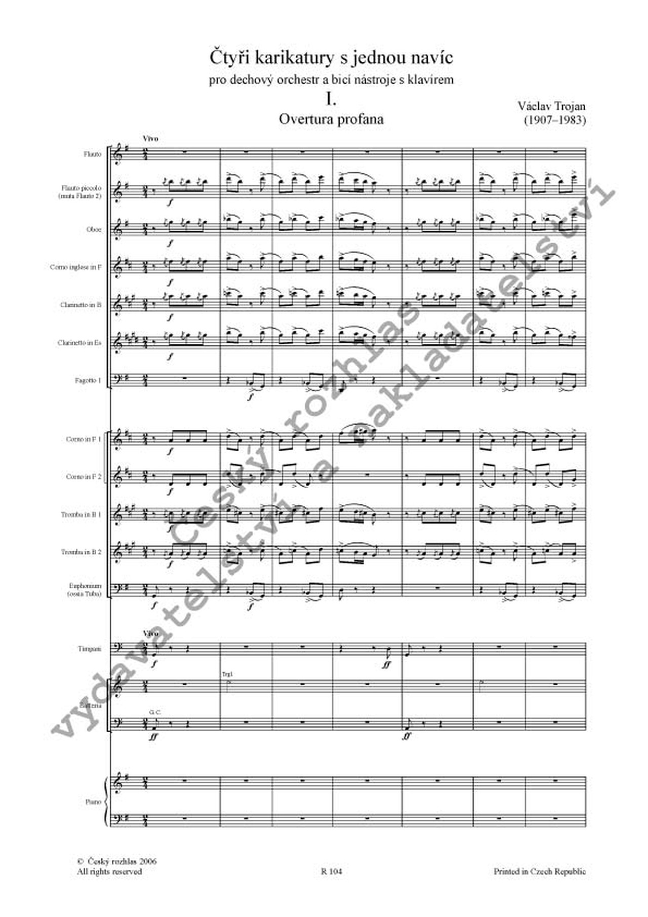 obsazení: 2fl - II muta fl picc, ob, cor ingl, cl in B, cl in Es, 2fg, 2cor, 2trb, 2tbn, tb, euf, timp, batt, pfte, cb
