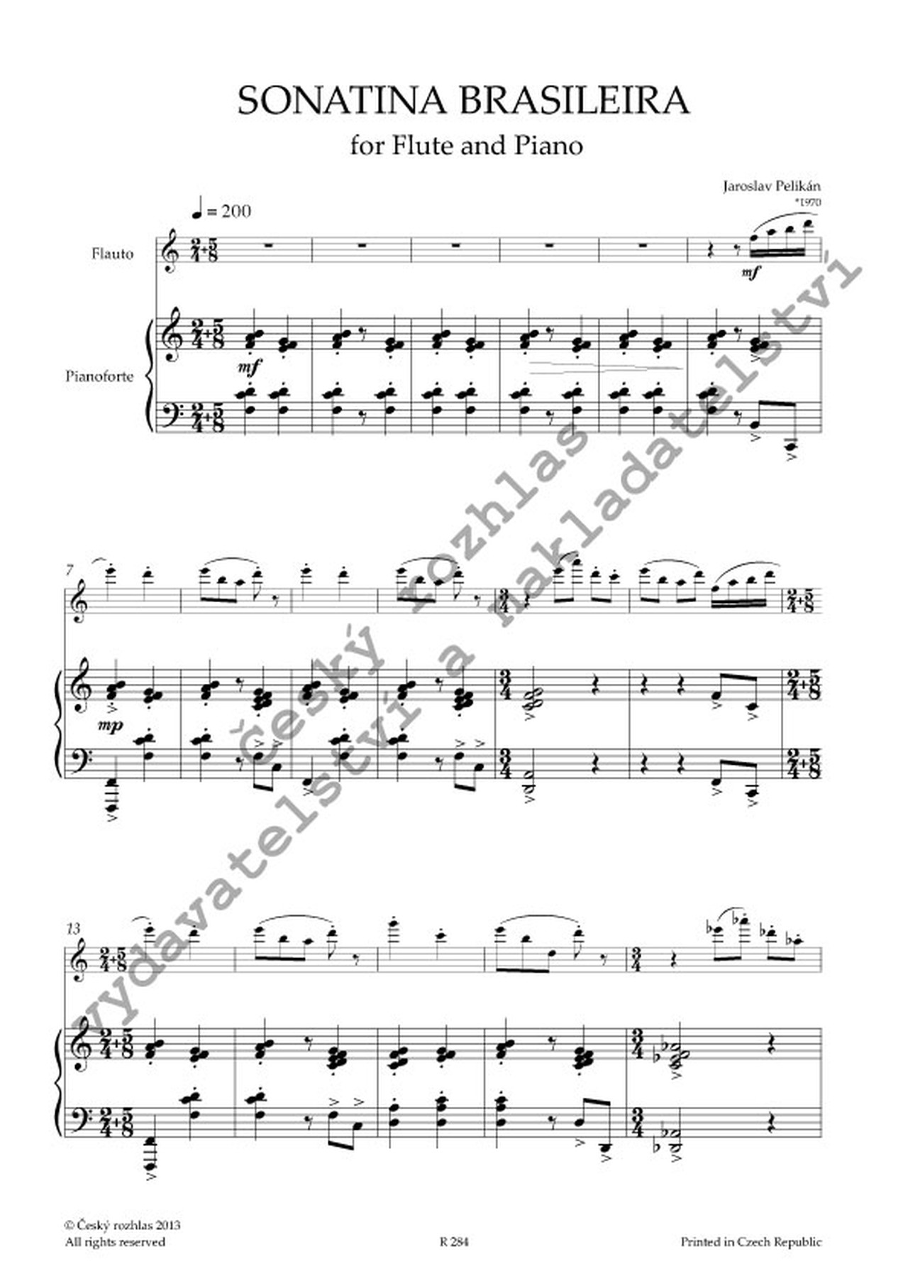 V autorově Sonatině pro flétnu a klavír se uplatňuje, jak je partné už z názvu, brazilská inspirace.