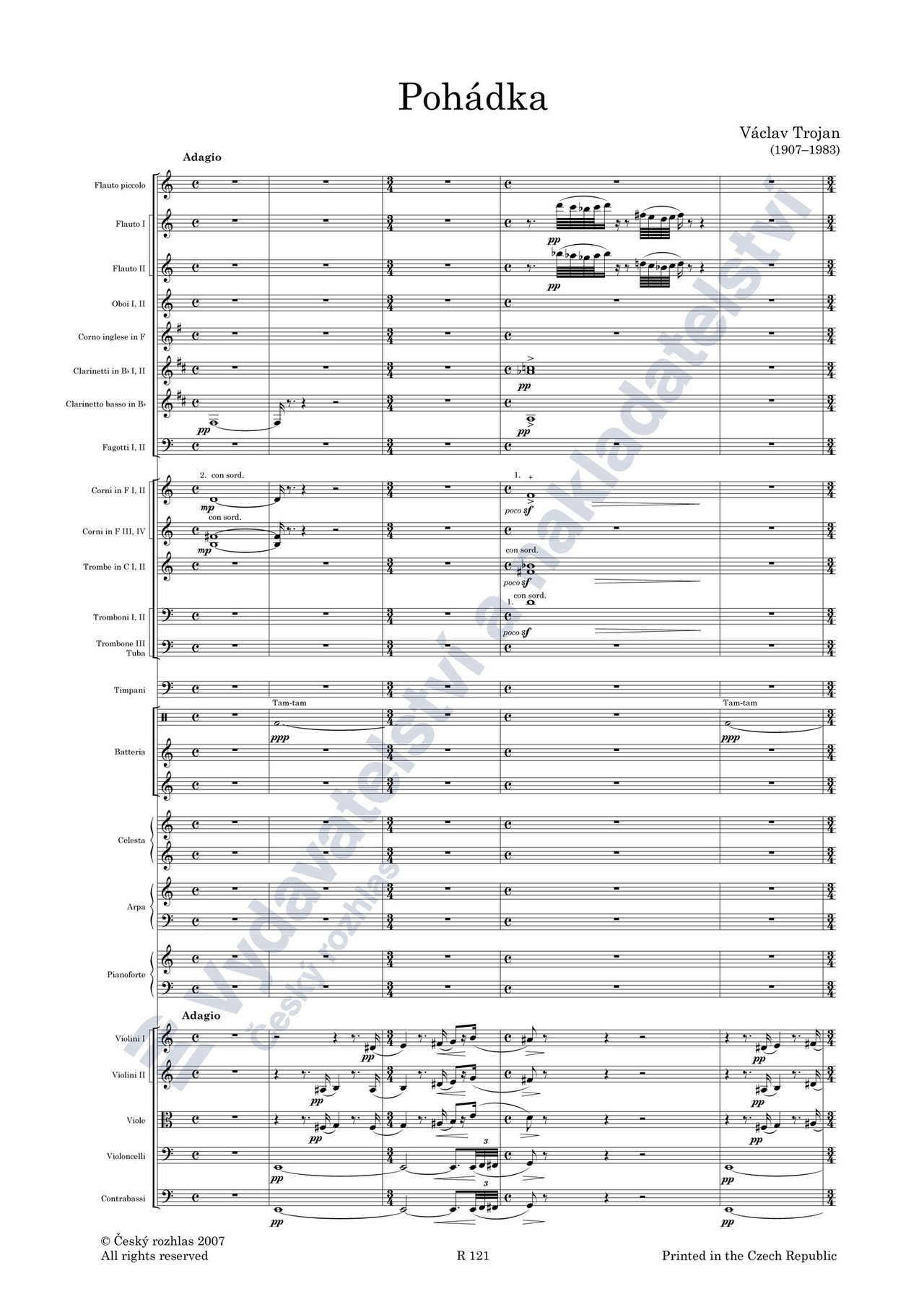 Fantazie pro symfonický orchestr Pohádka Václava Trojana (1907–1983), poměrně stručná, zhruba sedm a půl minuty trvající skladba, je určena velkému symfonickému orchestru s klavírem, celestou, harfou a poměrně velkou skupinou bicích nástrojů.