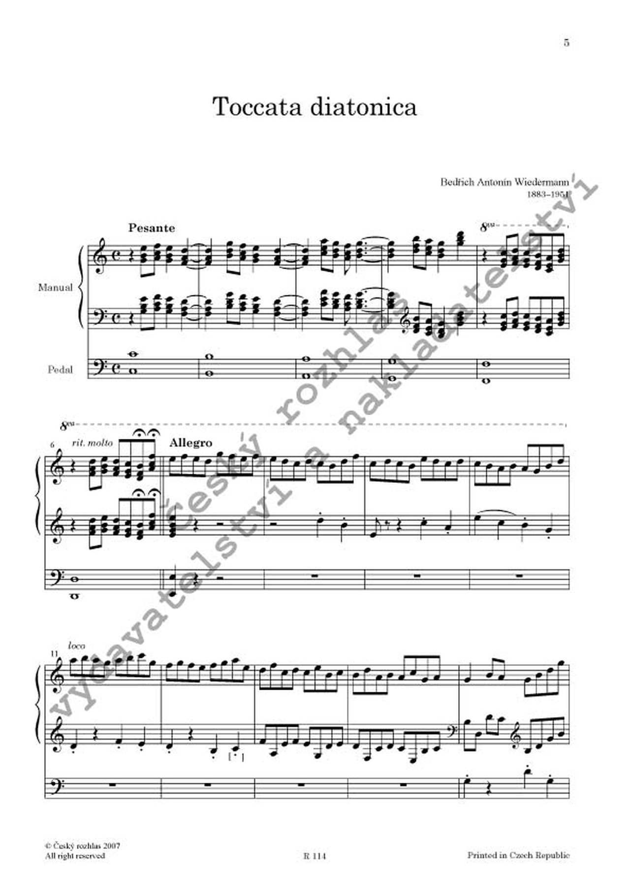 Těžiště rozsáhlého skladatelského díla Bedřicha Antonína Wiedermanna (1883–1951) leží v hudbě varhanní a vokální.