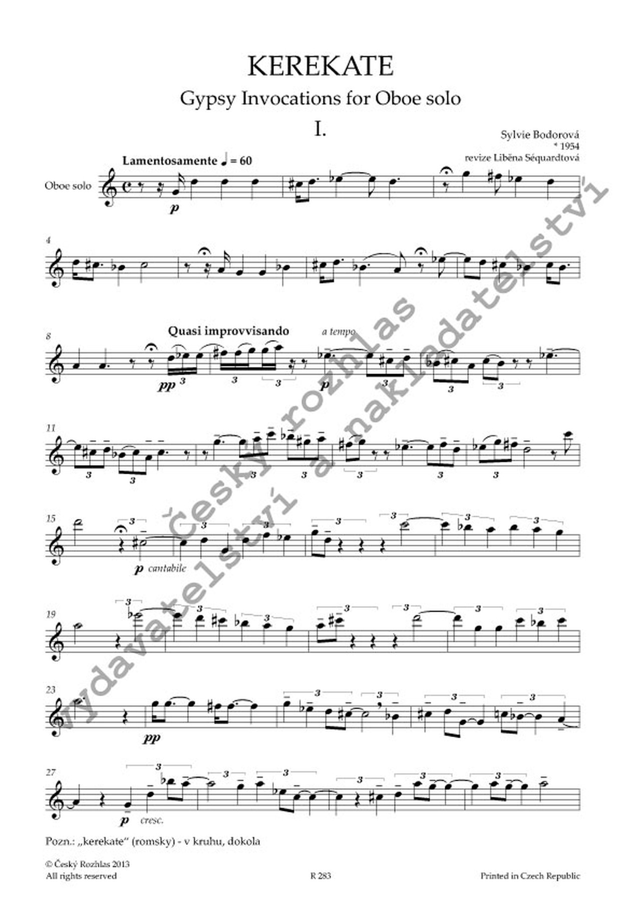 Skladbu jsem napsala začátkem roku 2013. Ráda bych poděkovala přední české hobojistce Liběně Séquardtové za odbornou revizi.“ S. Bodorová