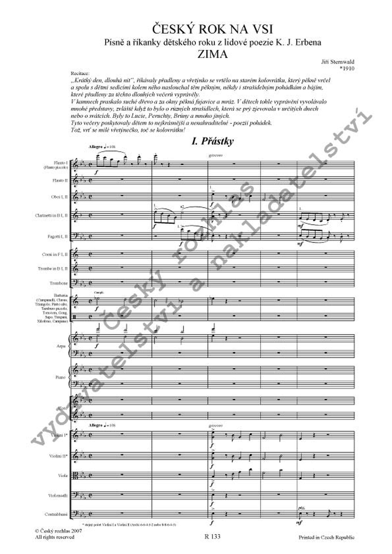 obsazení: coro bamb, 2fl - I muta fl picc, 2ob, 2cl, 2fg, 2cor, 2trb, tbn, batt, arp, pfte, archi