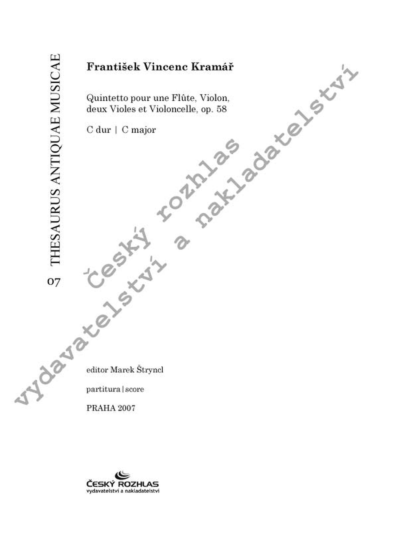 F. V. Kramář: Quintetto pour une Flute, Violon, deux Violes, et Violoncelle, Oeuv. 58
