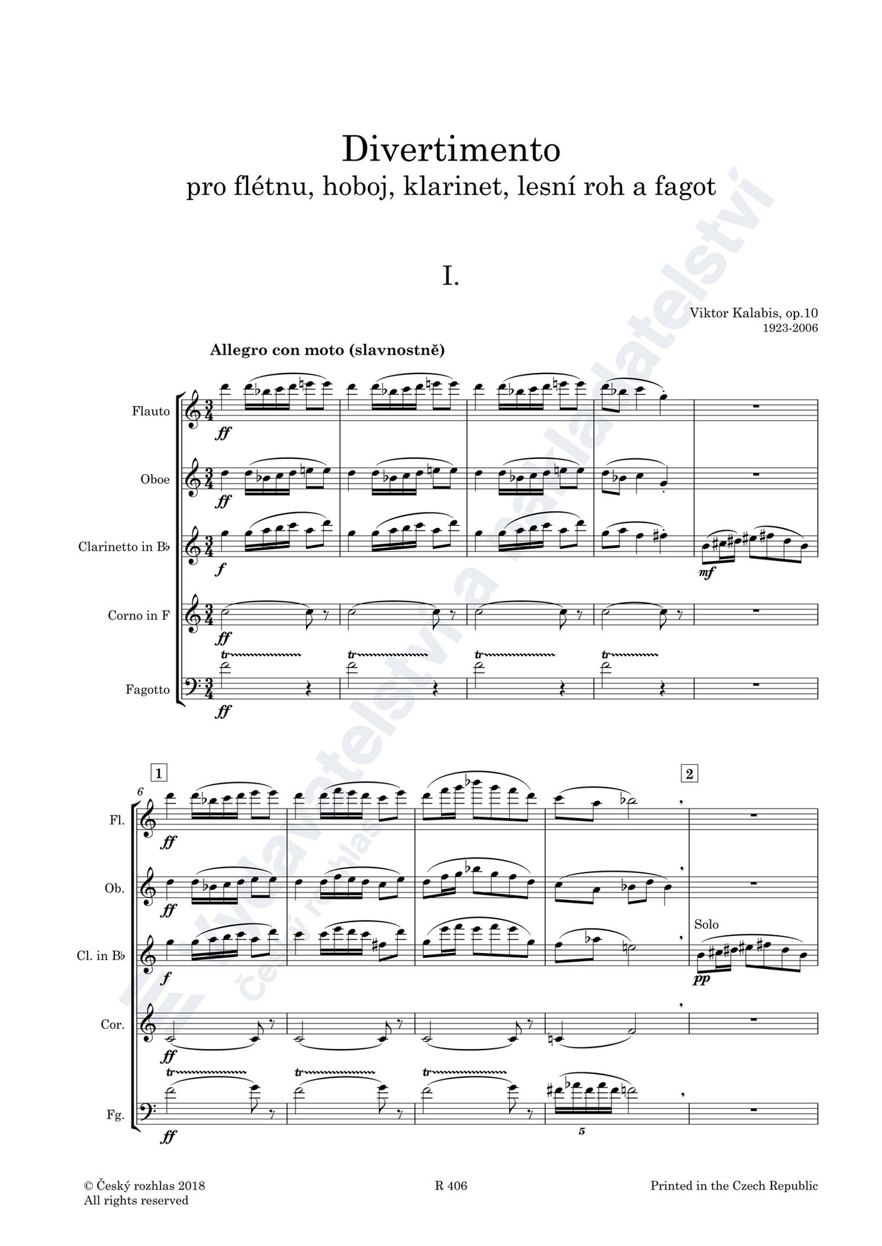 Viktor Kalabis: Divertimento pro dechové kvinteto, op. 10
